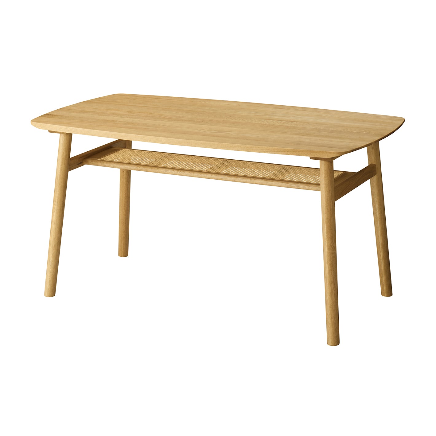 ナチュラルな木目とラタンを合わせた素材感が魅力のダイニングテーブル。