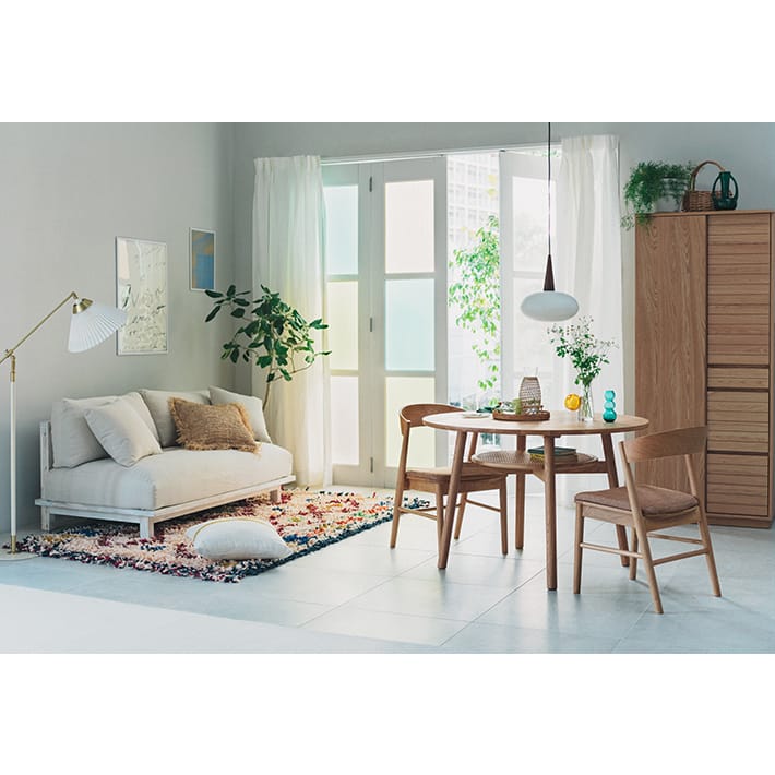 背もたれや座面、脚部の丸みのあるフォルムがやさしい印象に。