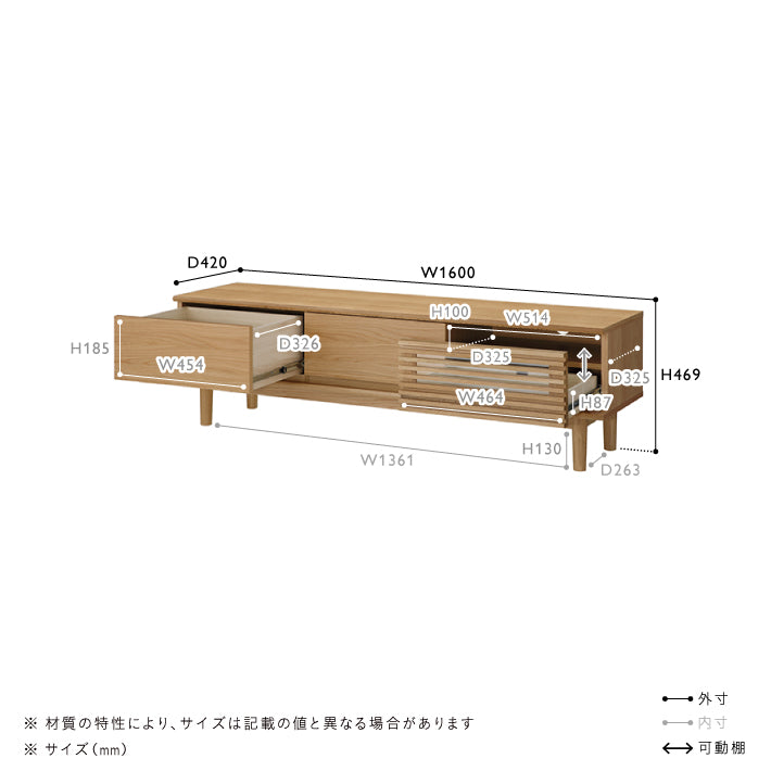 オーク材のナチュラルな素材感を生かしたシンプルなTVボード。