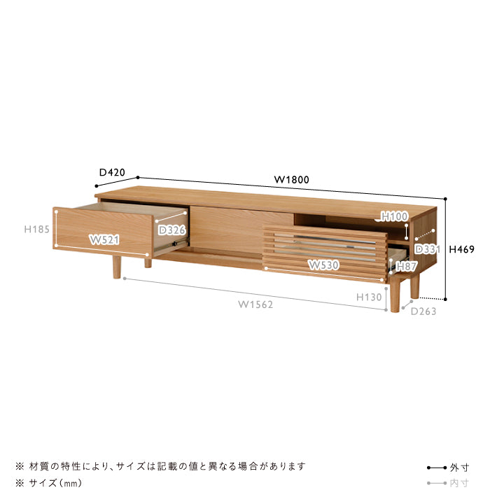 オーク材のナチュラルな素材感を生かしたシンプルなTVボード。