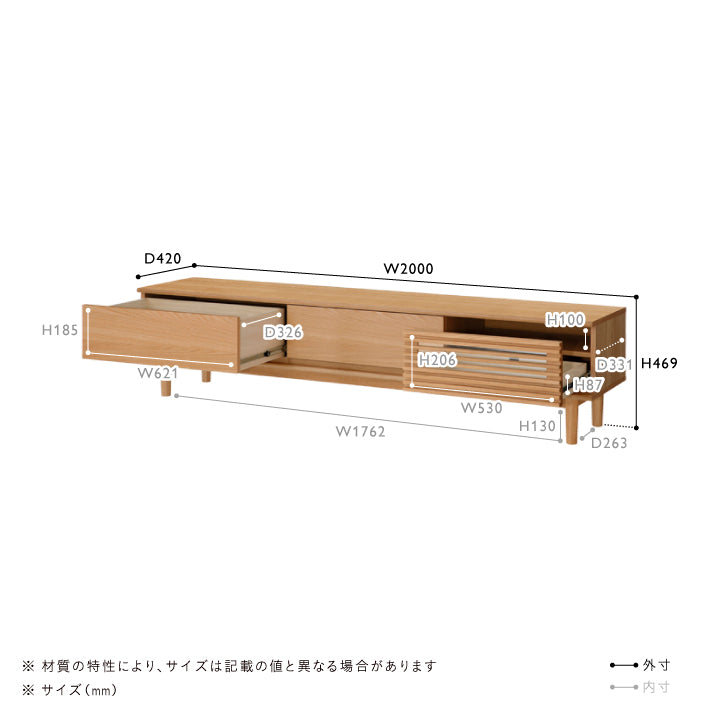 オーク材のナチュラルな素材感を生かしたシンプルなTVボード。