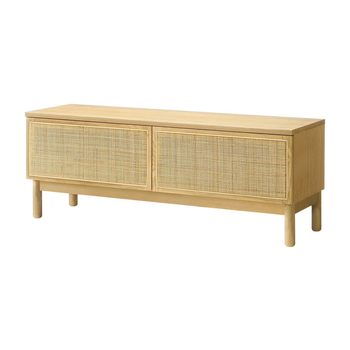 オーク材にラタンを組み合わせた、カジュアルな印象のTVボード。