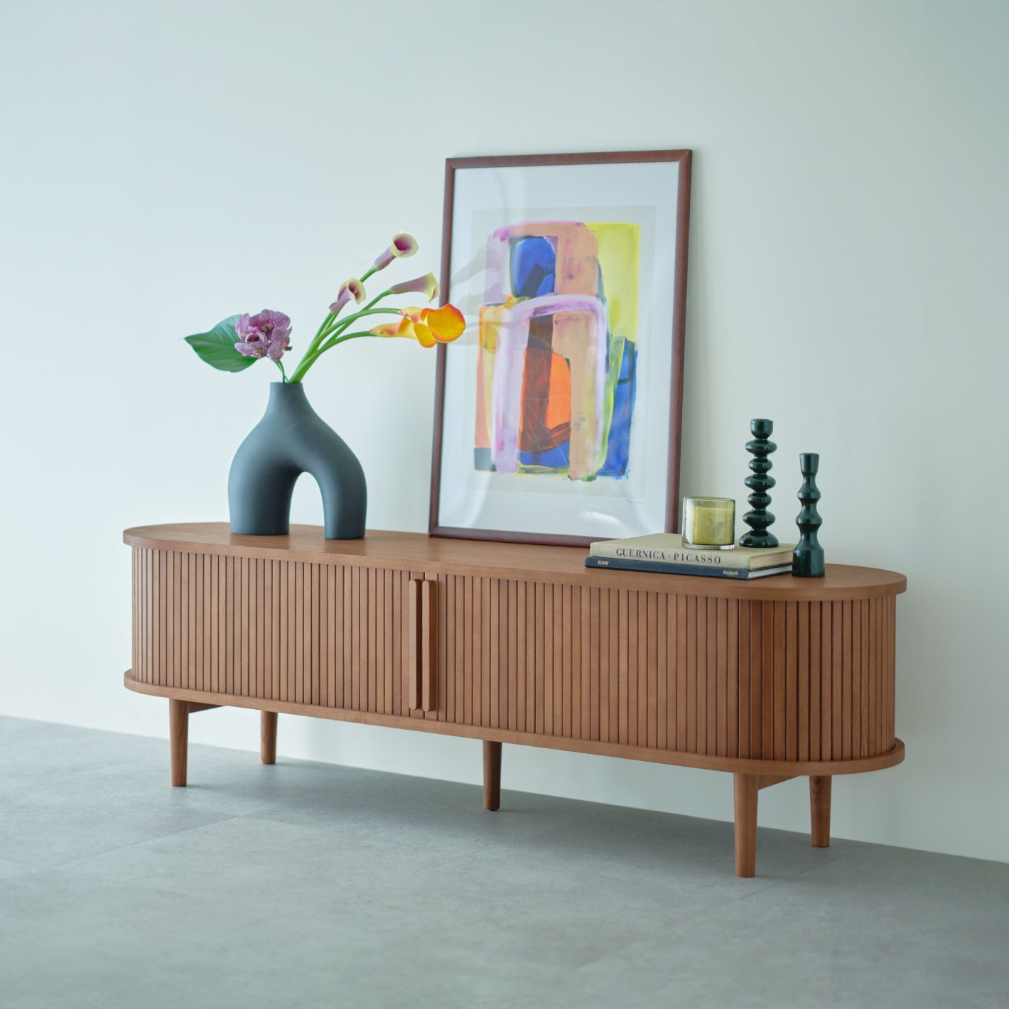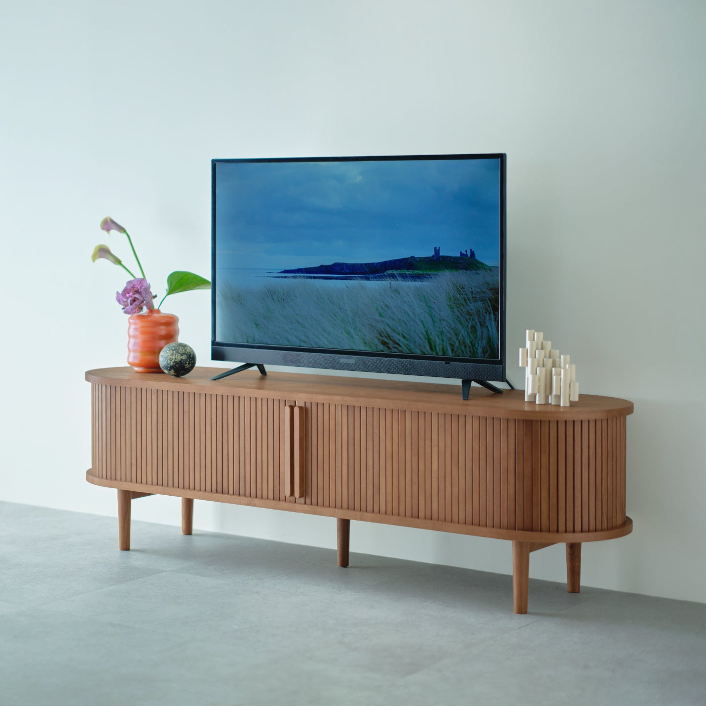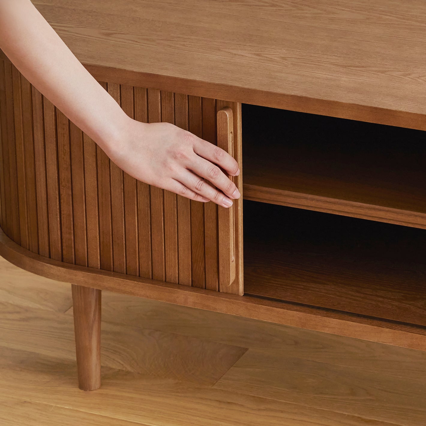 ヴィンテージ感のある蛇腹式の扉が特徴の、アイコニックなTVボード。