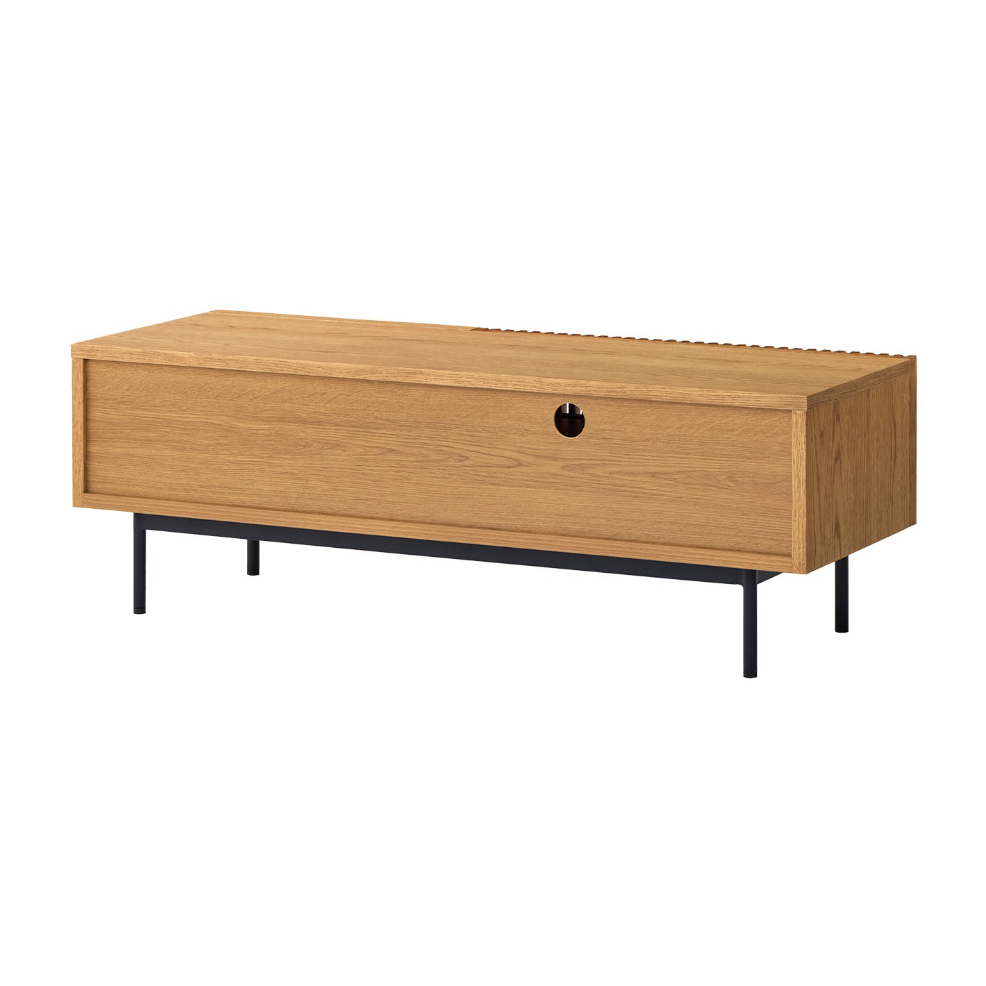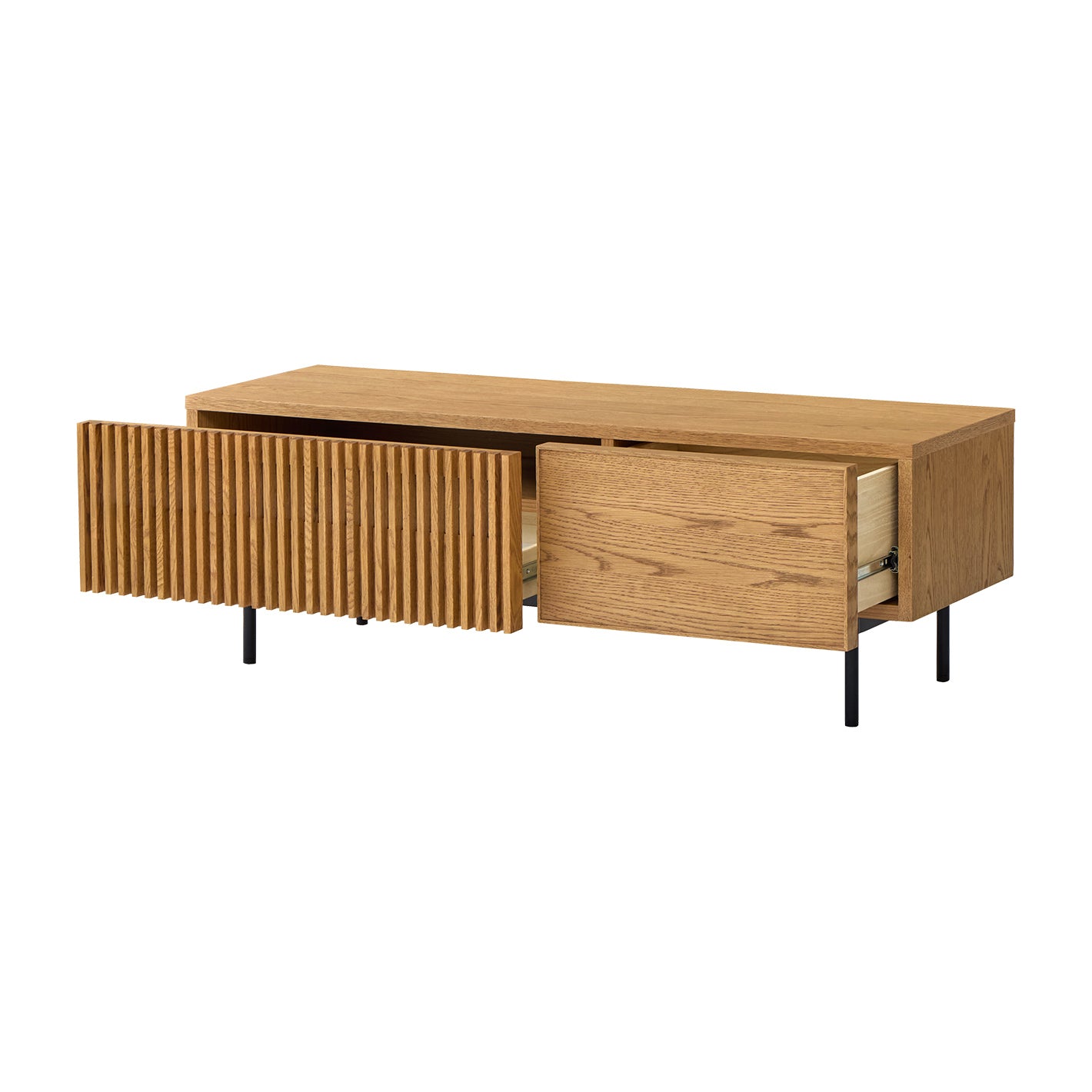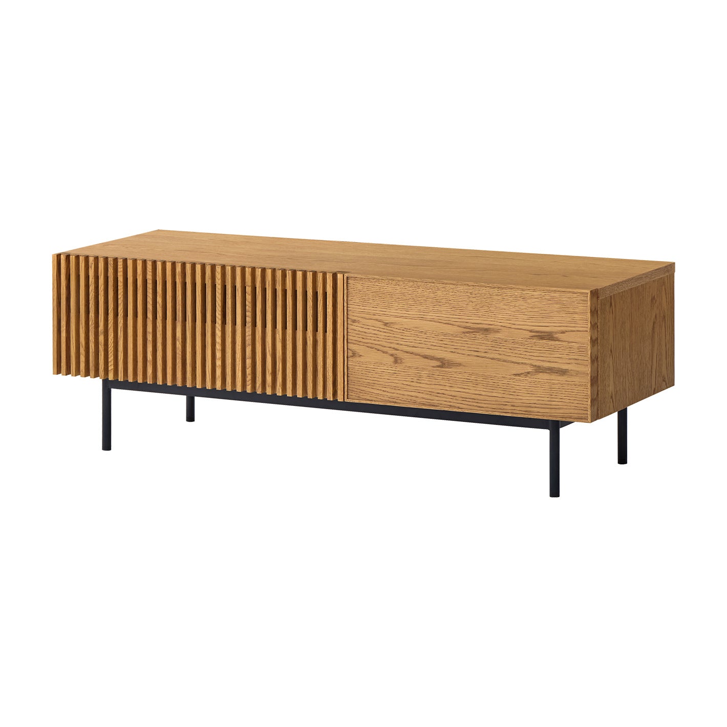 表情豊かなオーク材の素材感と、ルーバーが印象的なTVボード。