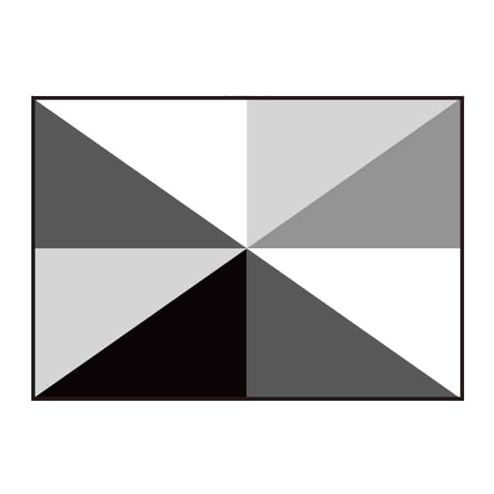 複数の三角形を組み合わせた、パズルのようなシンプルなデザイン。
