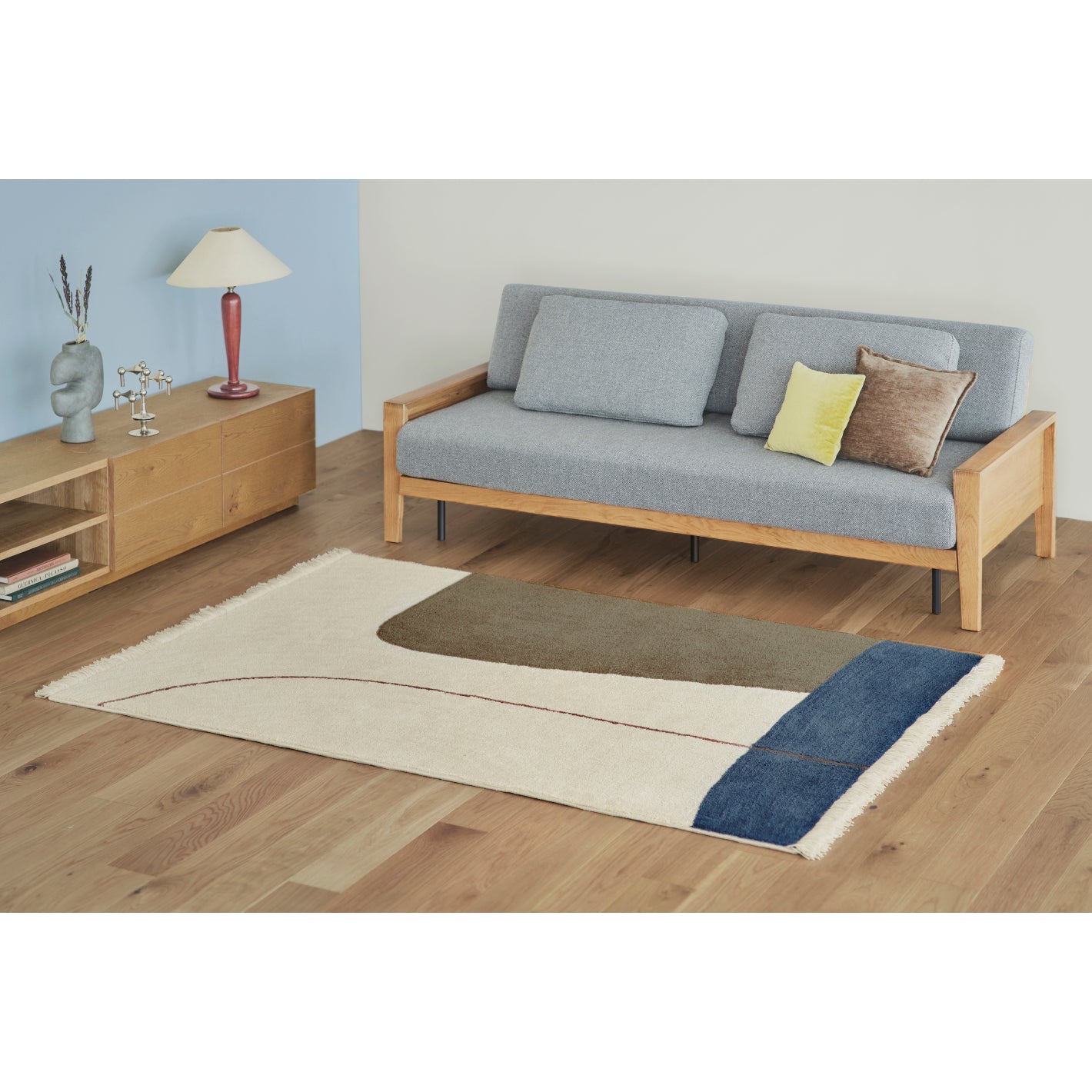 線と面で、ゆったりとした抽象柄を表現したラグ。