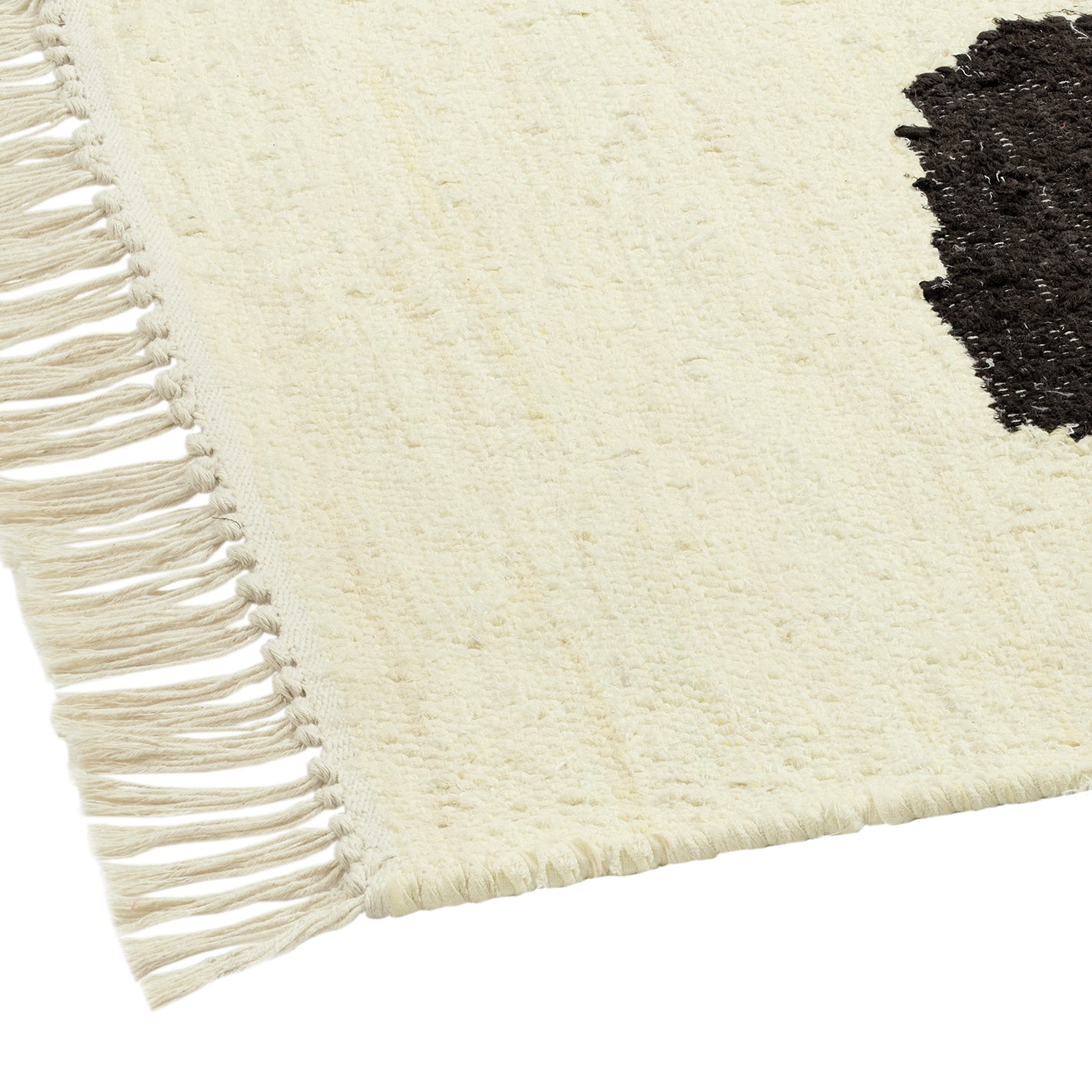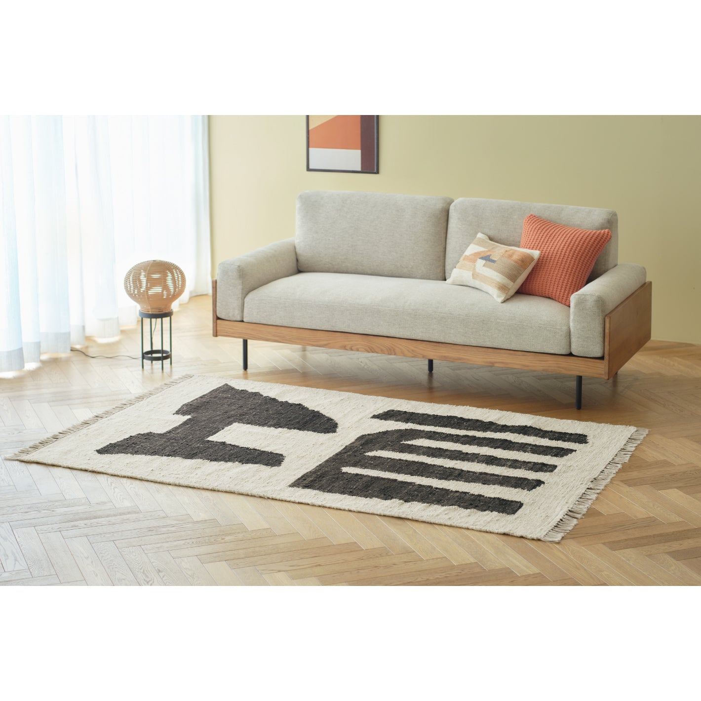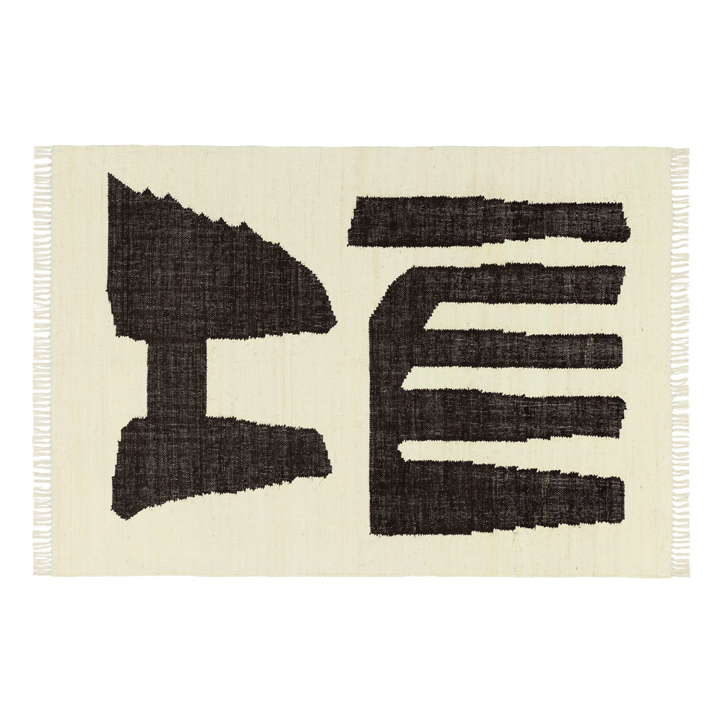 大胆な抽象柄を配置した、モノトーンのラグ。