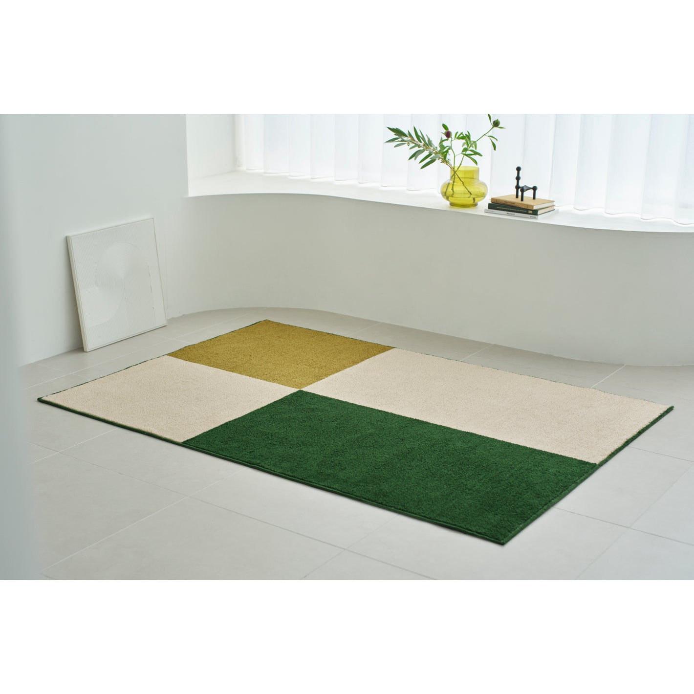 大胆に色を切り替えた、シンプルなデザインのラグ。