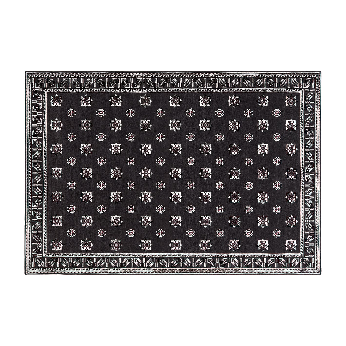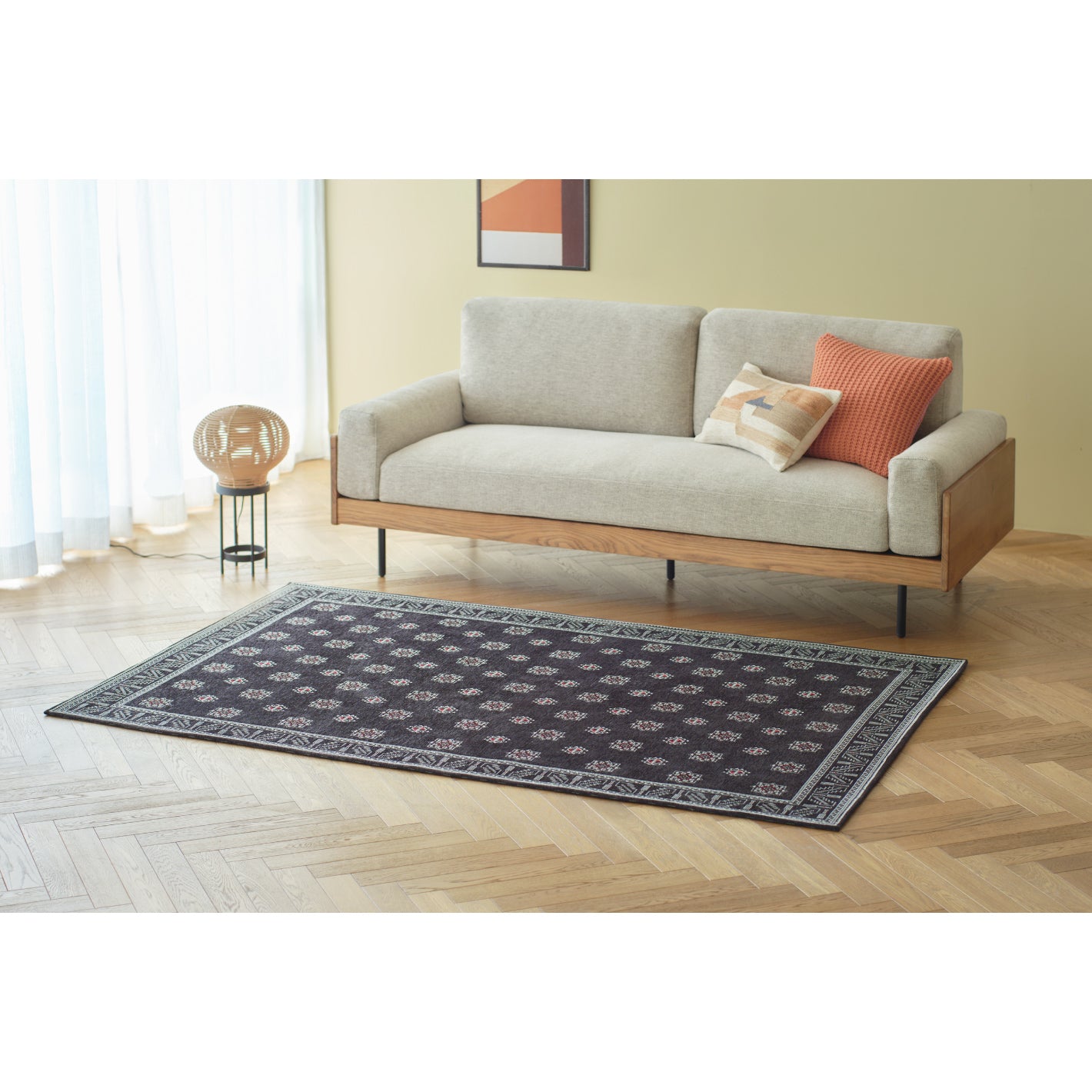 イランのトライバルラグをモチーフにした、モダンな印象のデザイン。