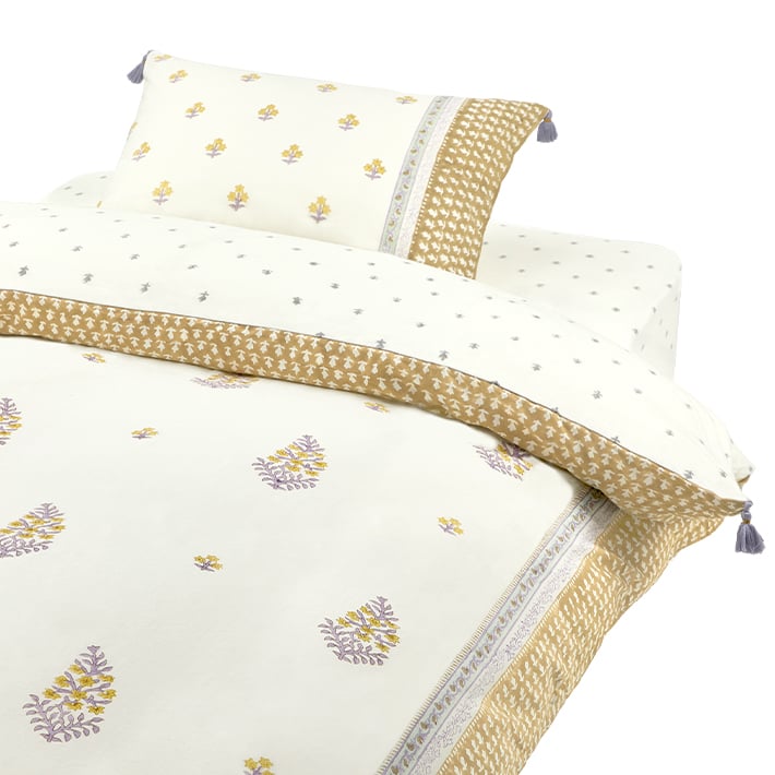 インドの職人が手作業で仕上げた、ブロックプリントのベッドリネンセット。