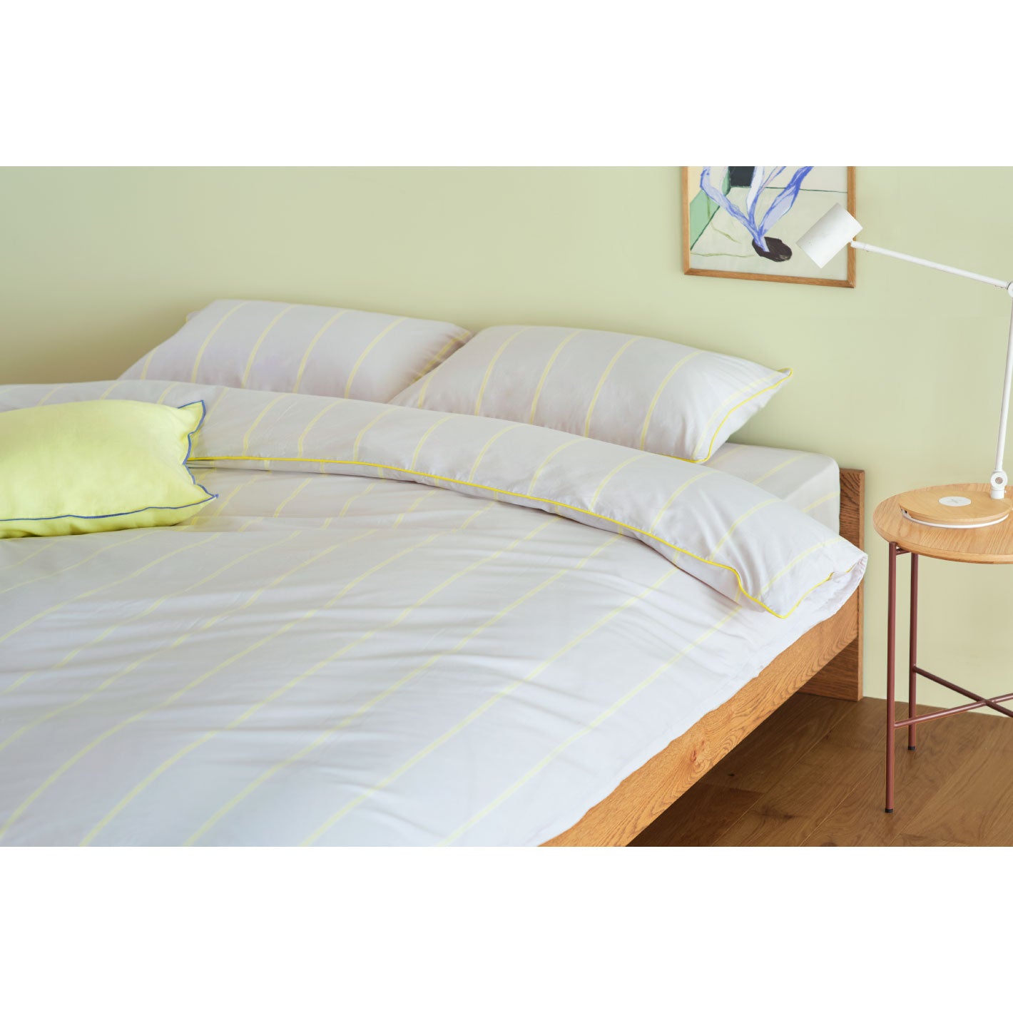 お部屋に自然と馴染む、細めのストライプ柄とさわやかな色合いが魅力のベッドリネン。