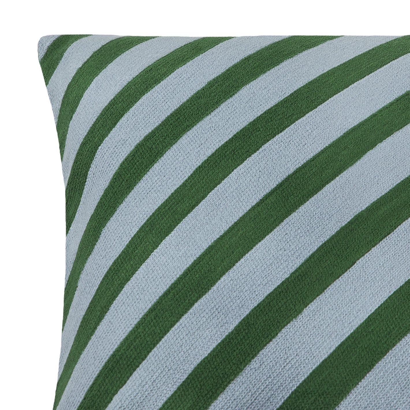 バイカラーのストライプを、チェーン刺繍で表現したクッションカバー。