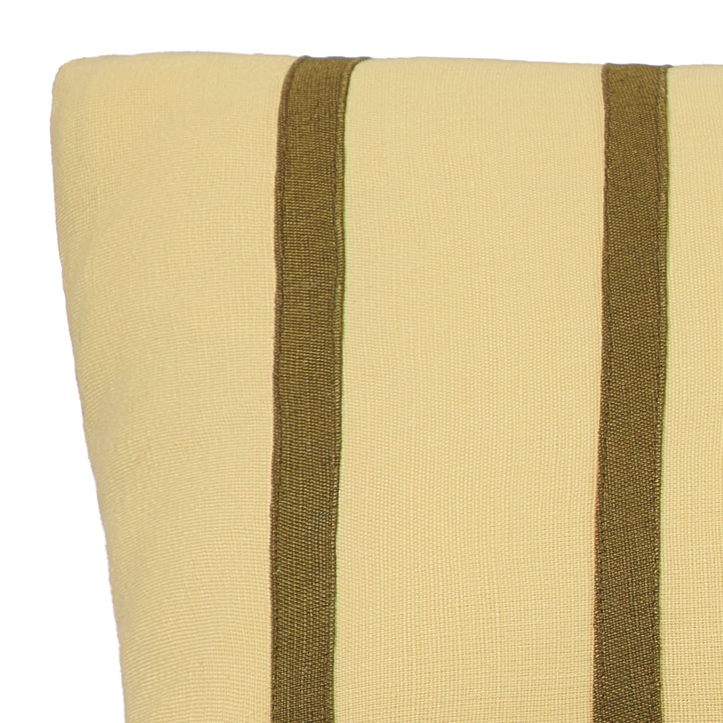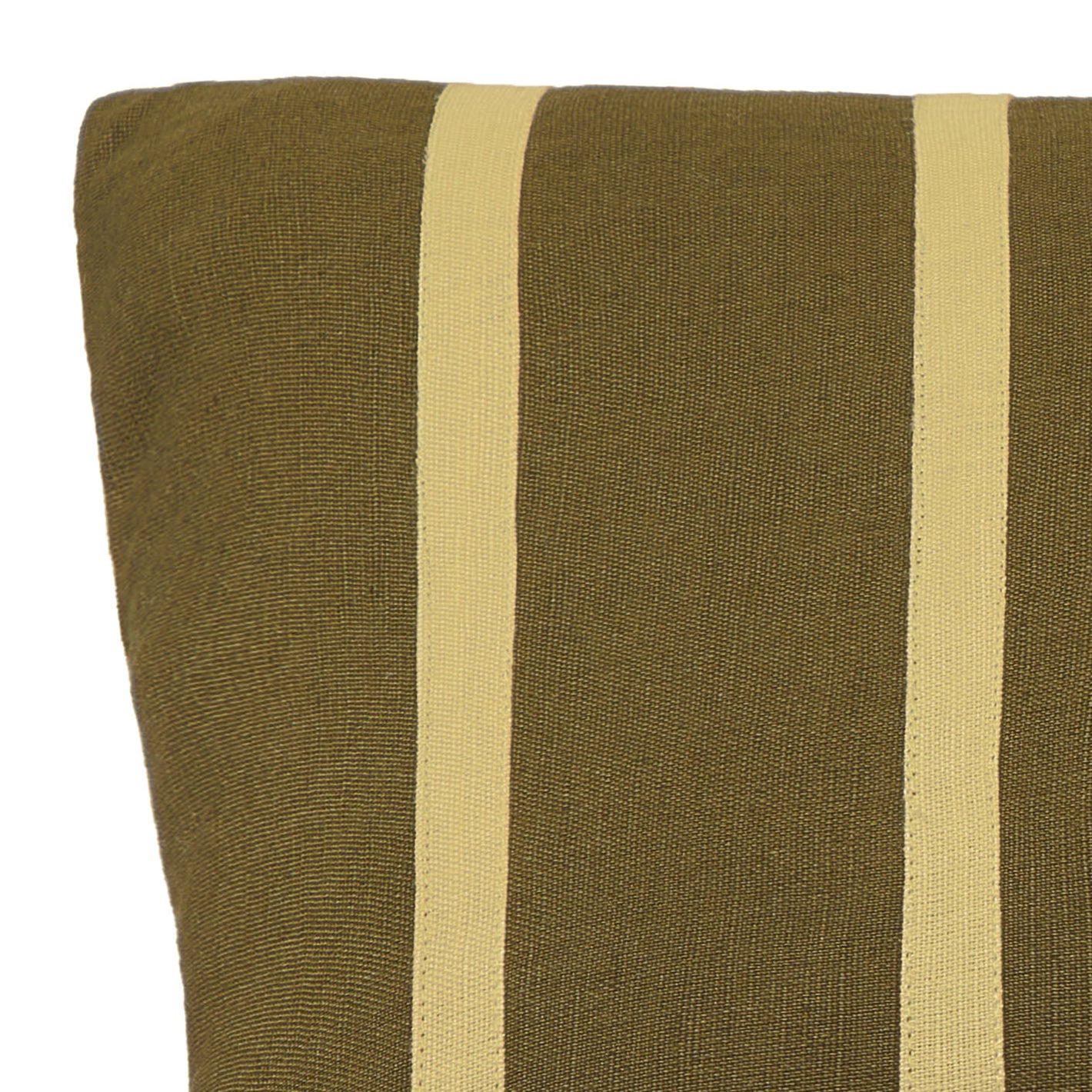 落ち着いた色味のストライプが、モダンな印象のクッションカバー。