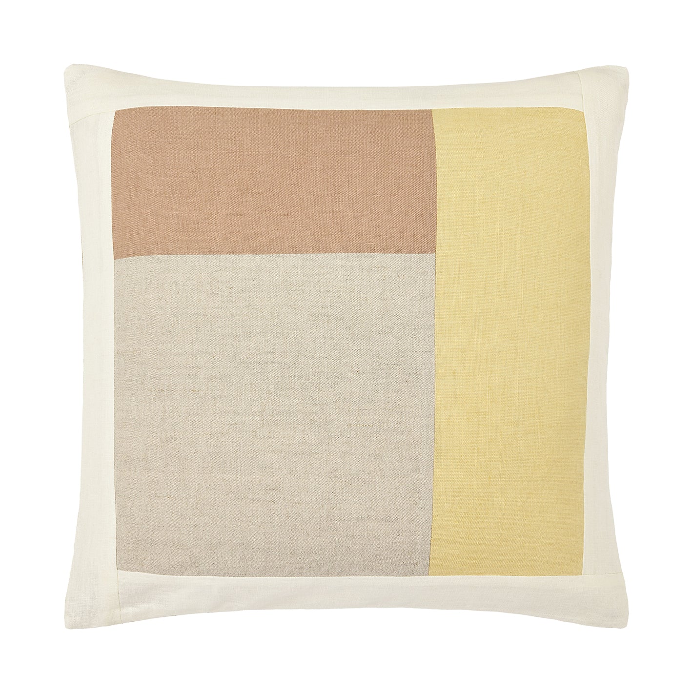 コットンやリネンを使った生地をパッチワークしたクッションカバー。