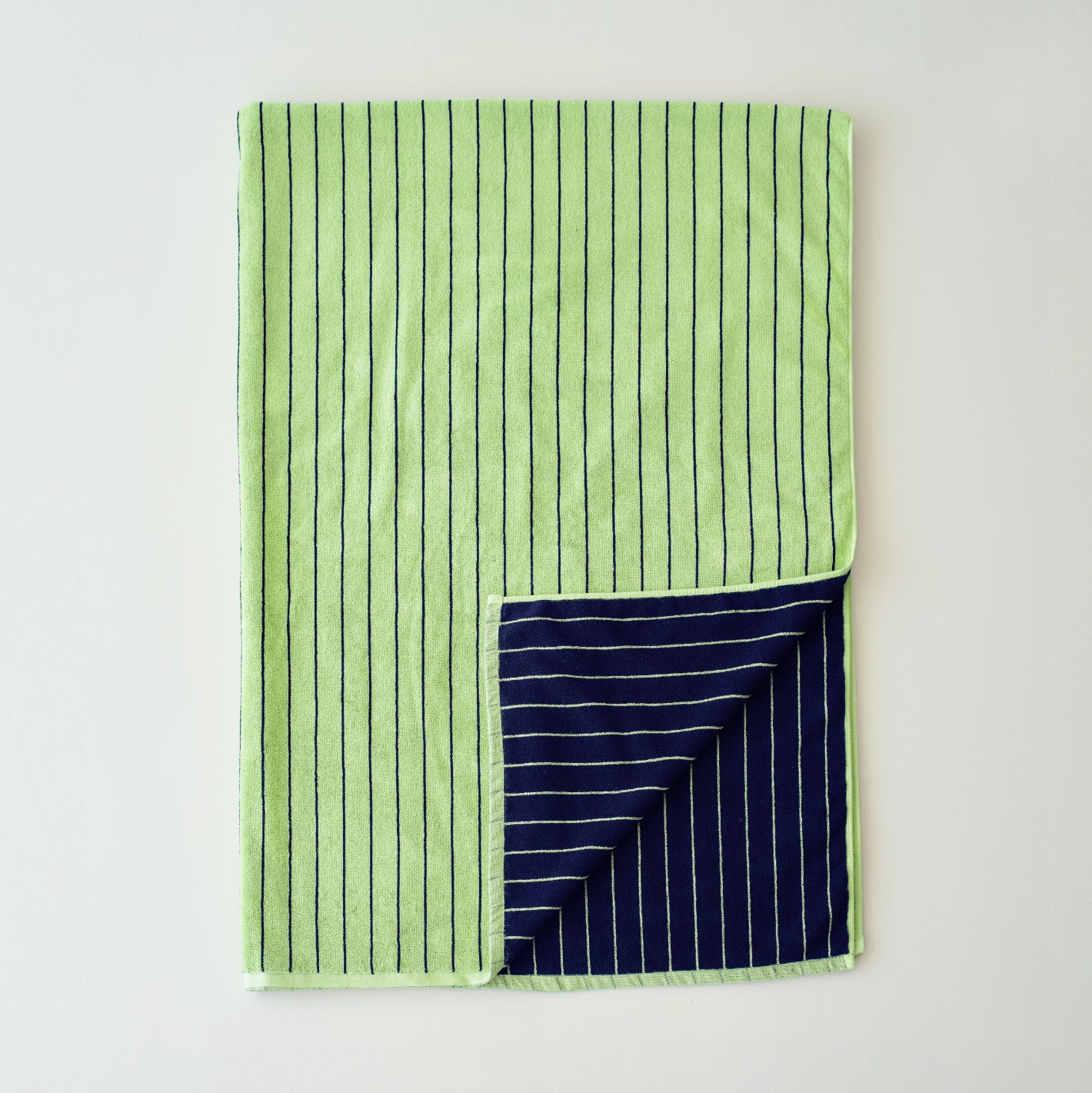 シンプルなストライプ柄を両面にあしらったタオルケット。