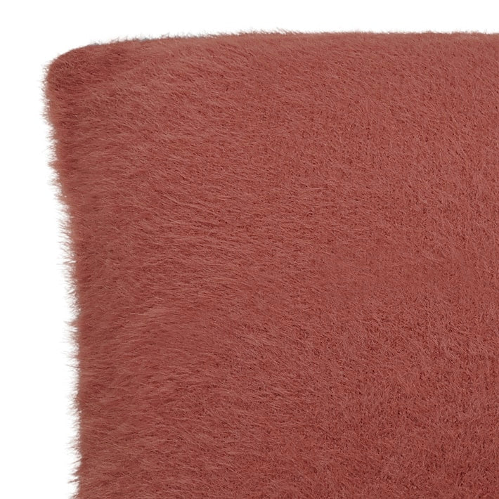立体感のある編み地を使い、さまざまな色の長方形で構成したクッションカバー。