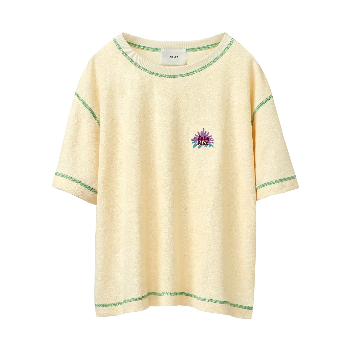 さわやかなカラーのパイル生地に、ステッチがアクセントになったルームウェア。