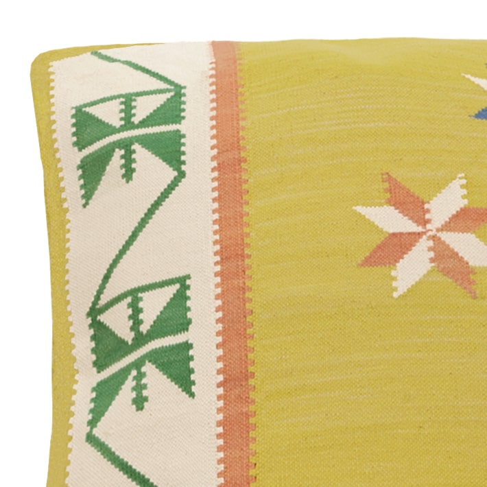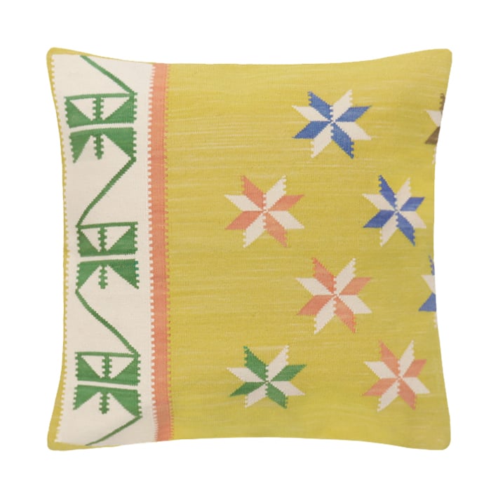 インドの職人が高密度に織り上げた、パンジャキリムのクッションカバー。