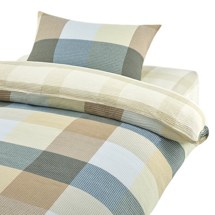ワッフル素材が心地いい、シンプルなブロックチェック柄の掛け布団カバー。