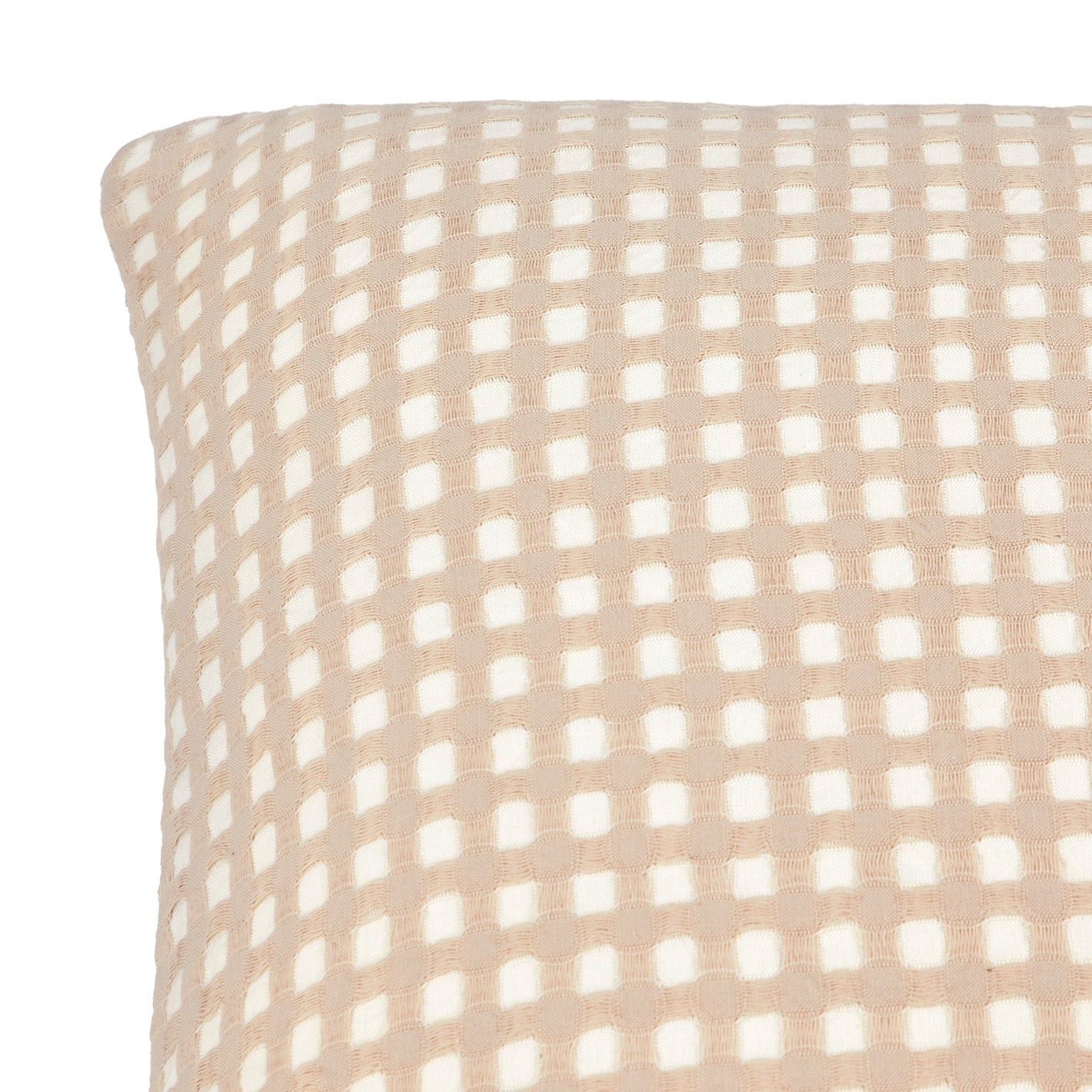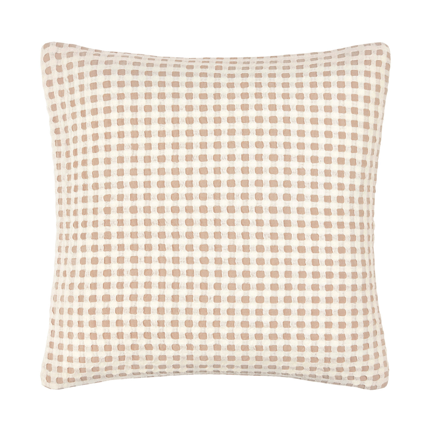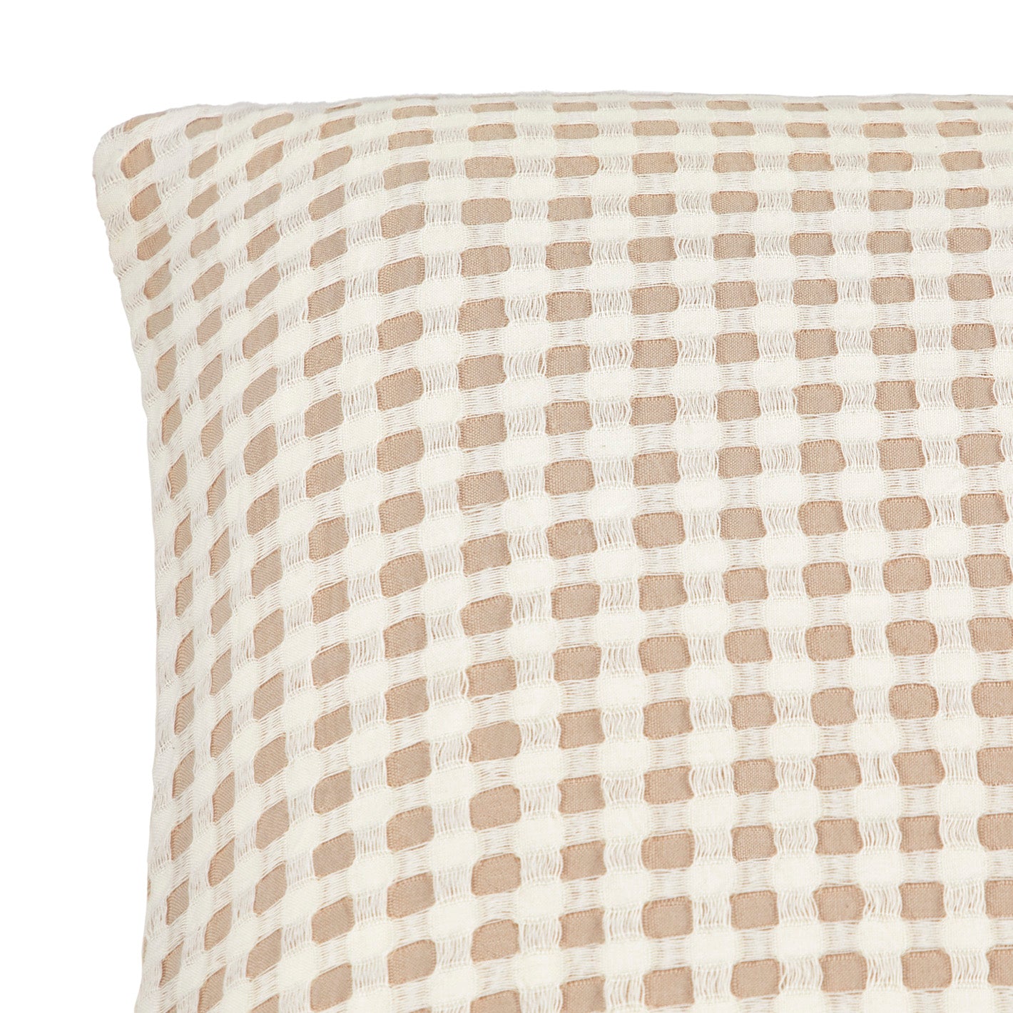 肌ざわりの良い、立体感のあるワッフル生地のクッションカバー。