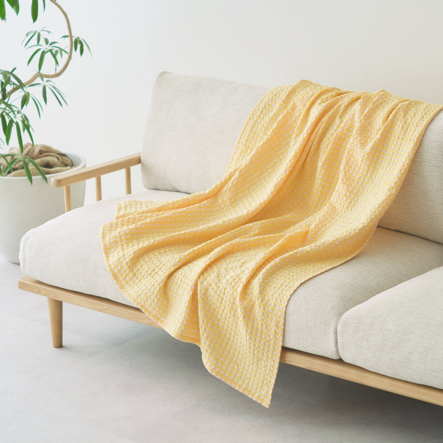 肌ざわりの良い、立体感のあるワッフル生地のブランケット。
