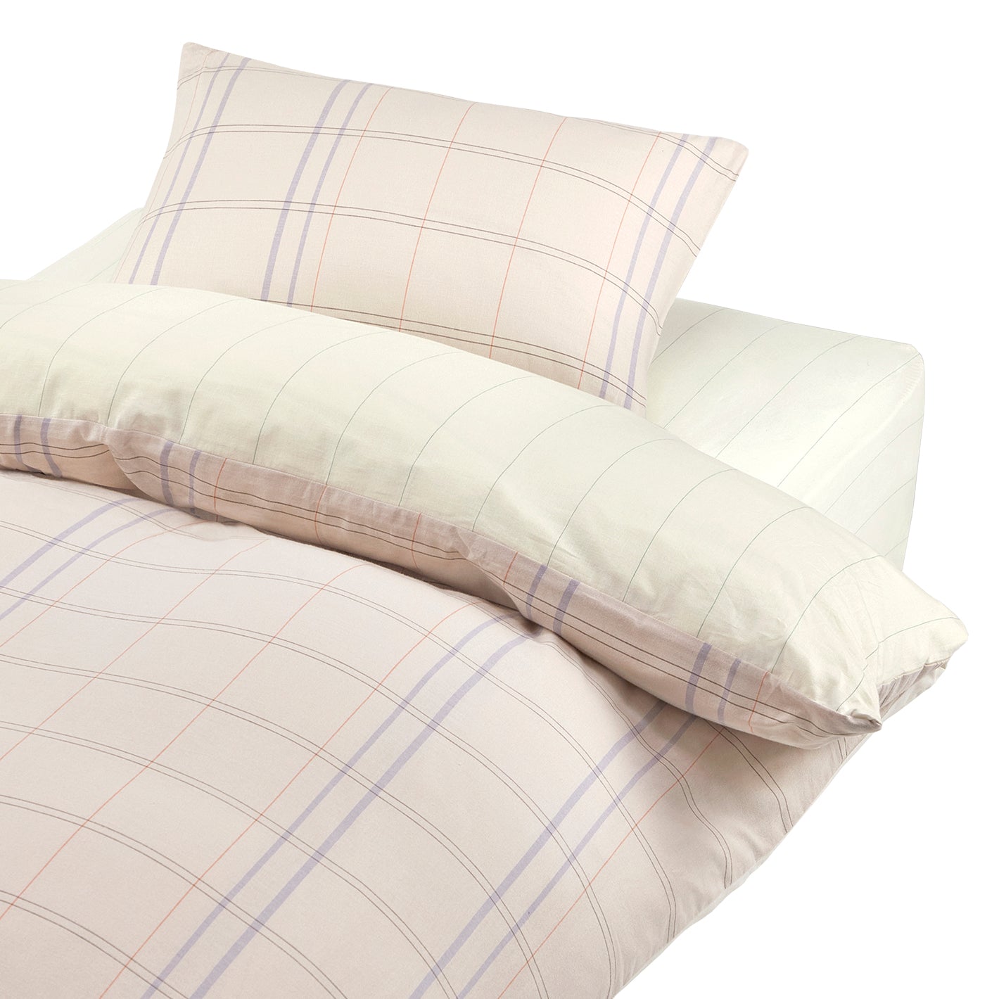 線の太さや配色でさりげなくアクセントを効かせた、チェック柄の掛布団カバー。