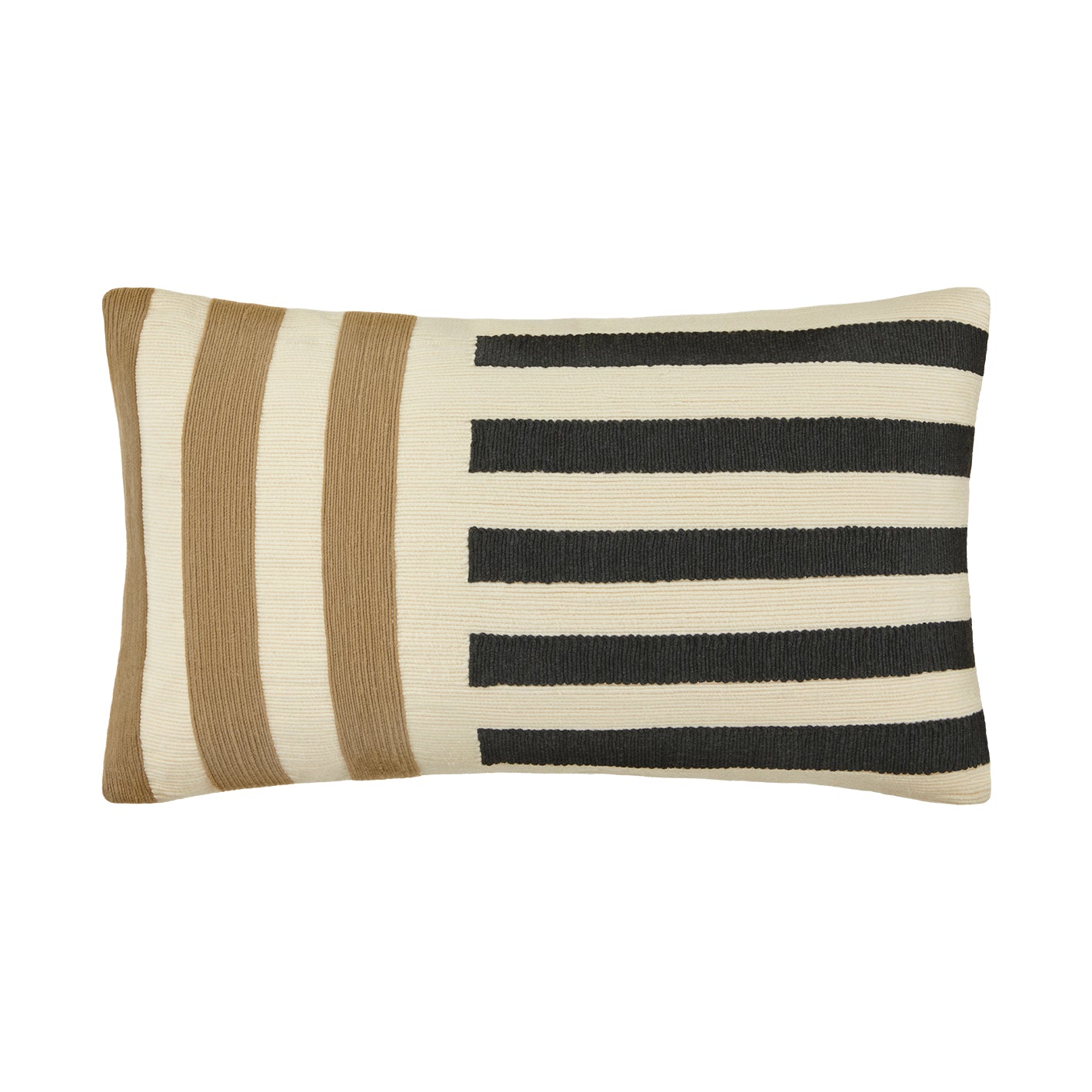 縦と横のストライプを刺繍で表現したクッションカバー。