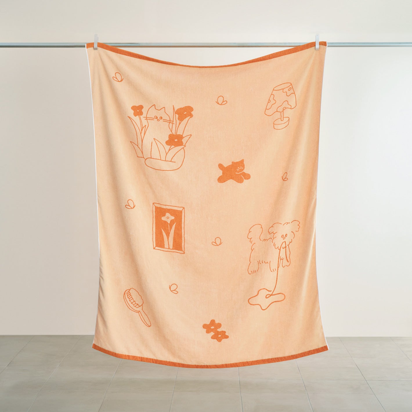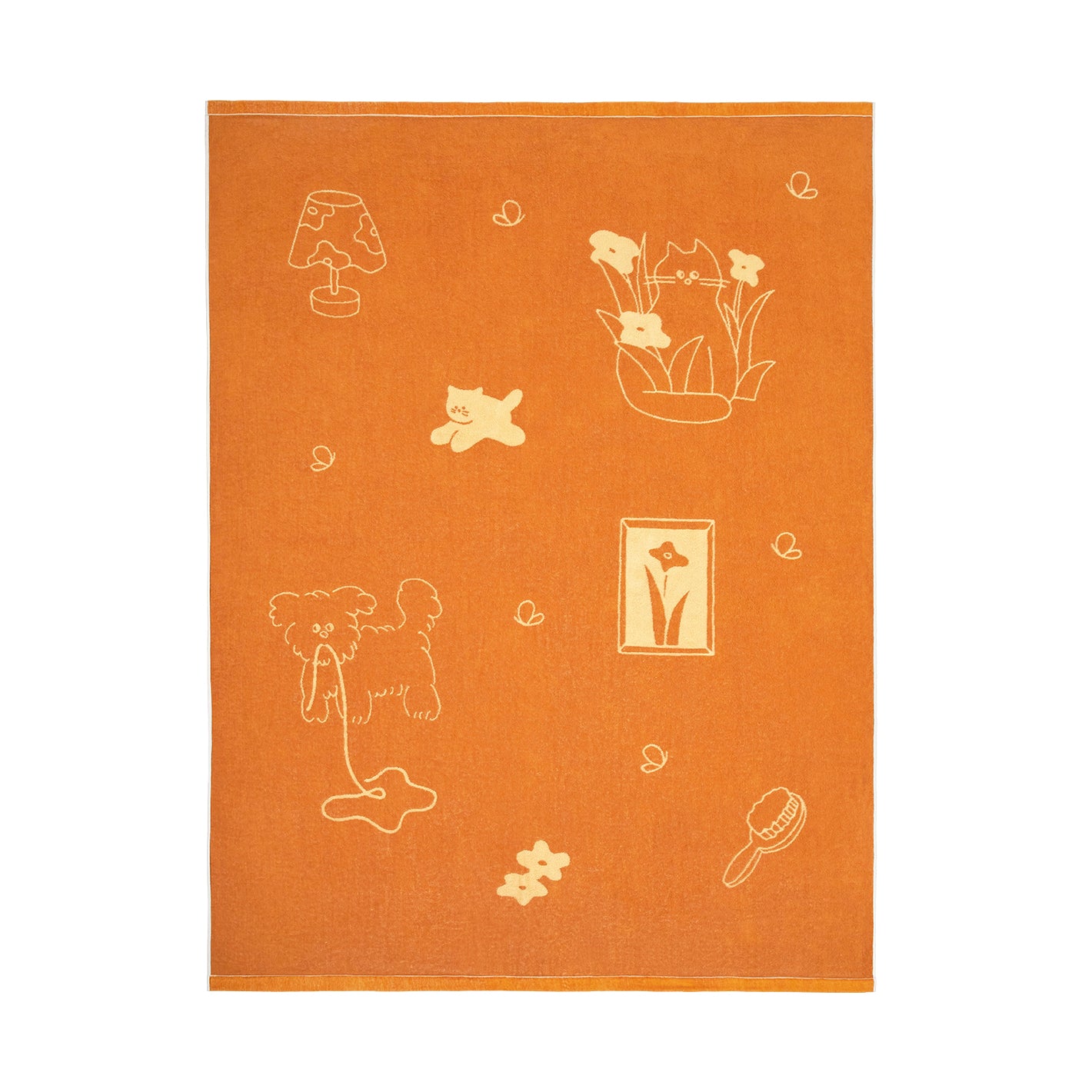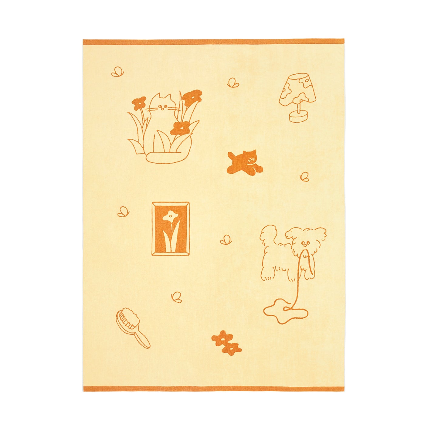 やんちゃな子犬やお花畑で遊ぶ猫の柄に、ほっこりと癒やされるタオルケット。