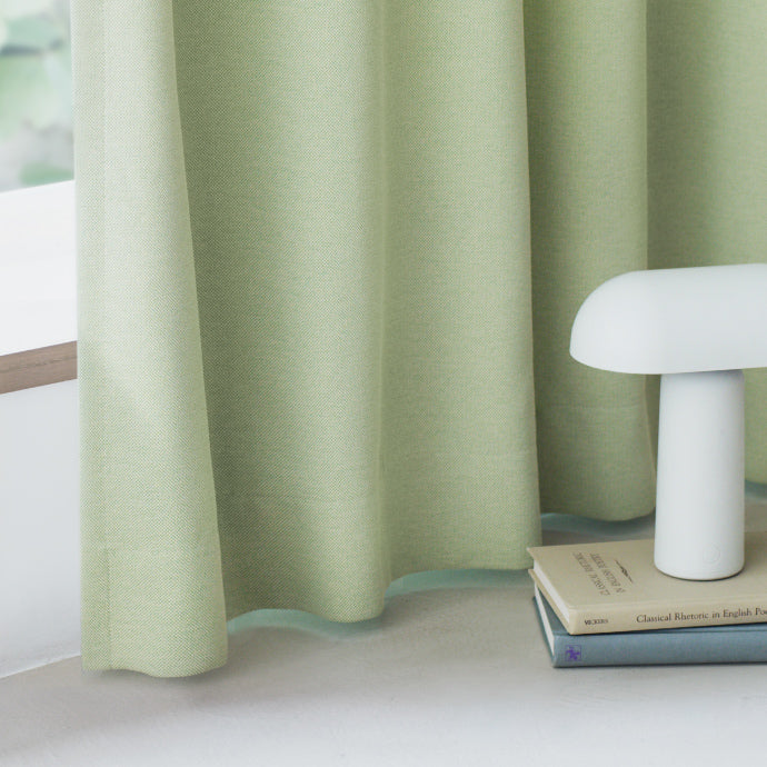 色の異なるタテ糸とヨコ糸で表現した、奥行きのある表情が魅力の遮光カーテン。