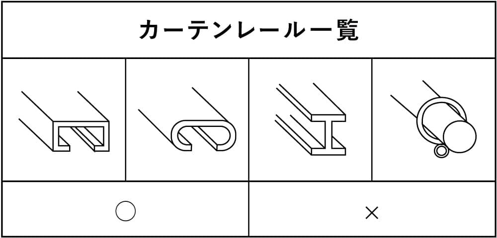 • カーテンレールへ取り付ける場合、I型と装飾レールには取り付けができませんのでご注意ください。