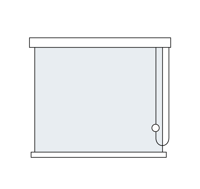 1枚の生地で作るシェード。左・右の操作位置の指定ができます。カーテンレールへの取り付けが可能です。