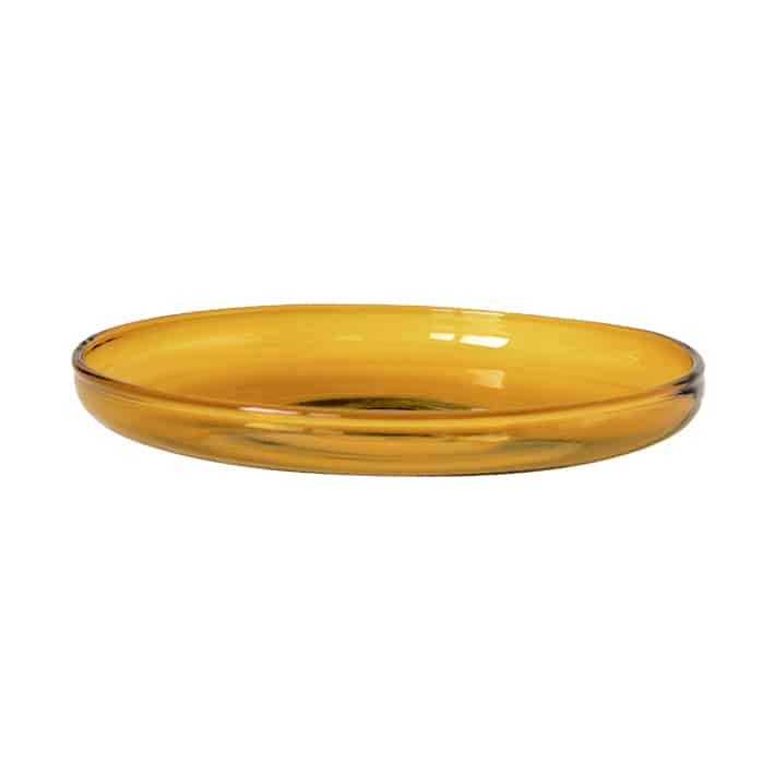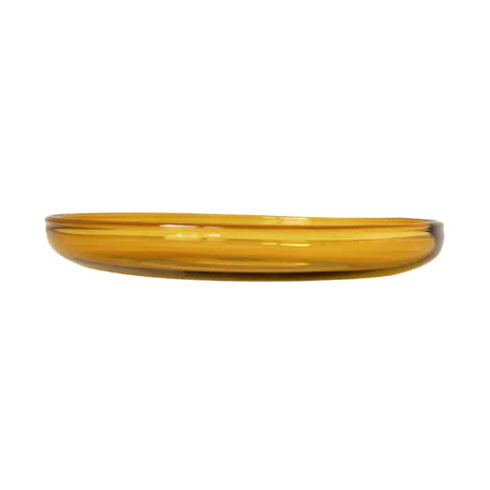 ひとつひとつの職人の手で作られた、持ち手付きのガラス製プレート。