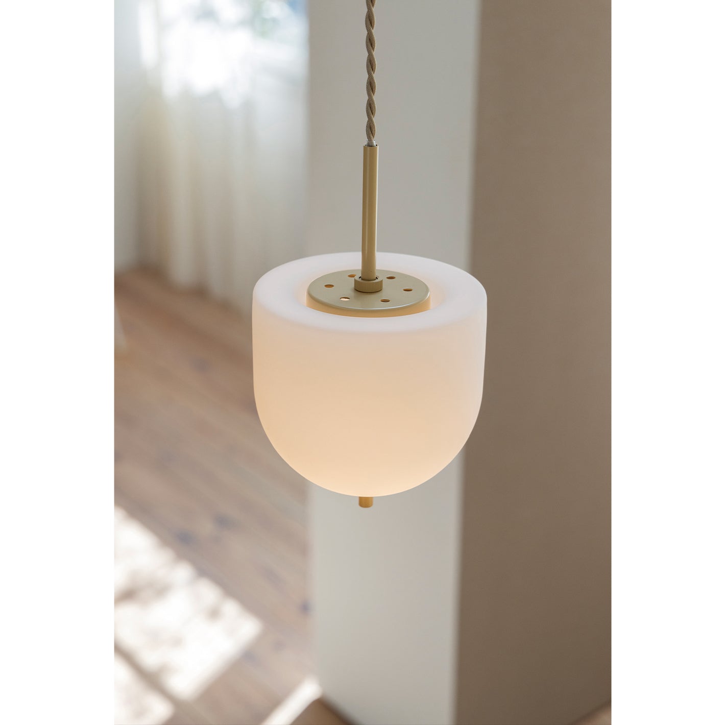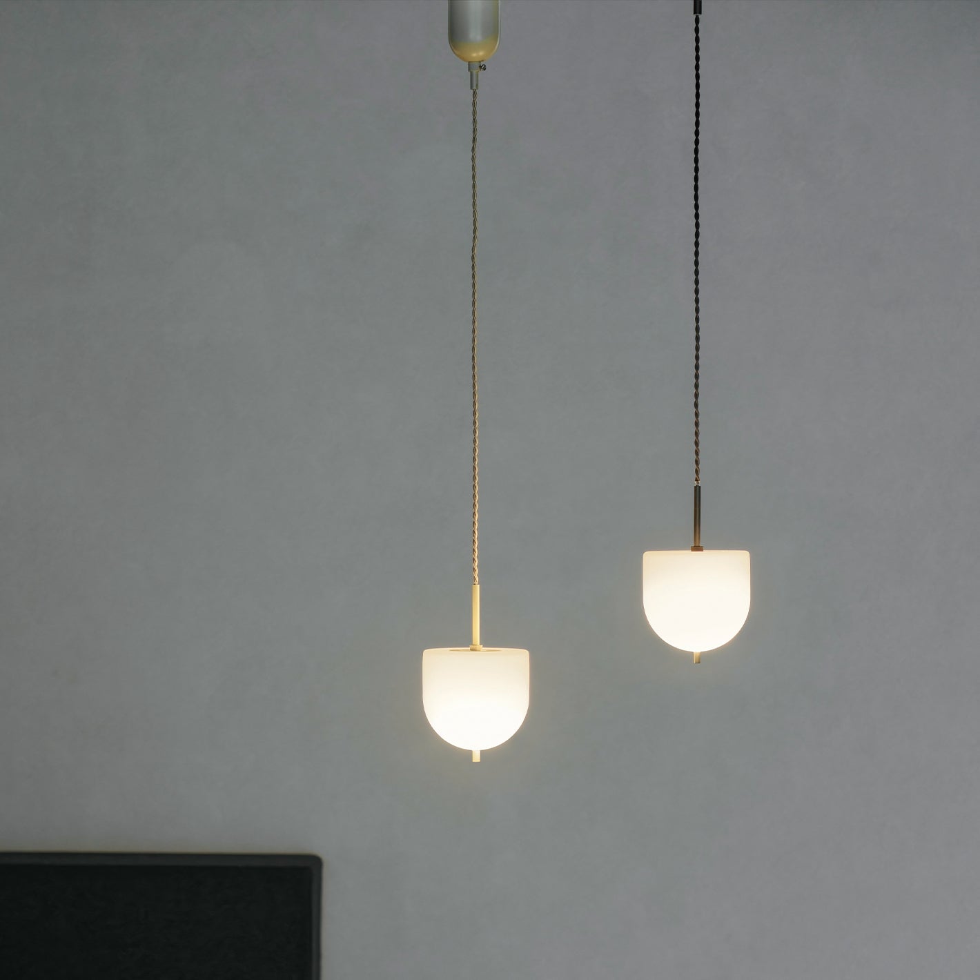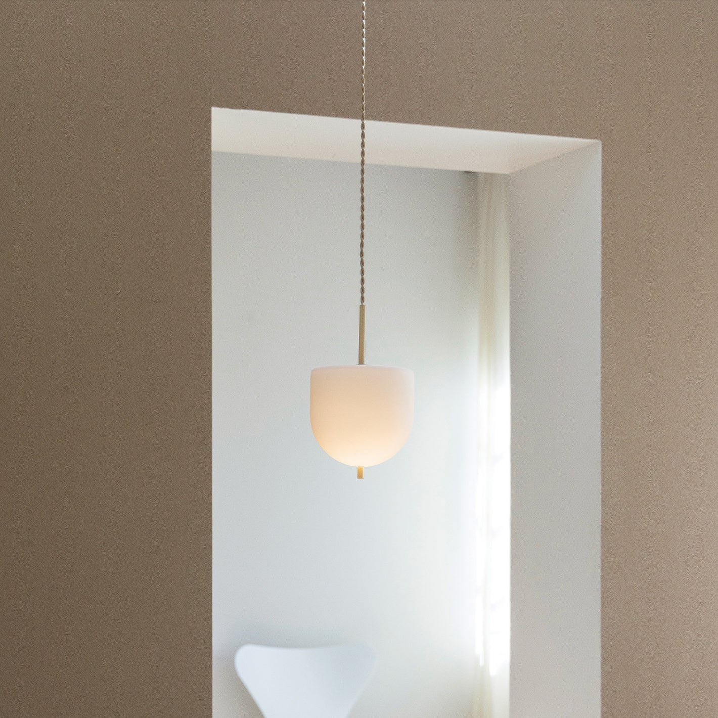 直線的なポールと、丸みのあるシェードを組み合わせたペンダントライト。