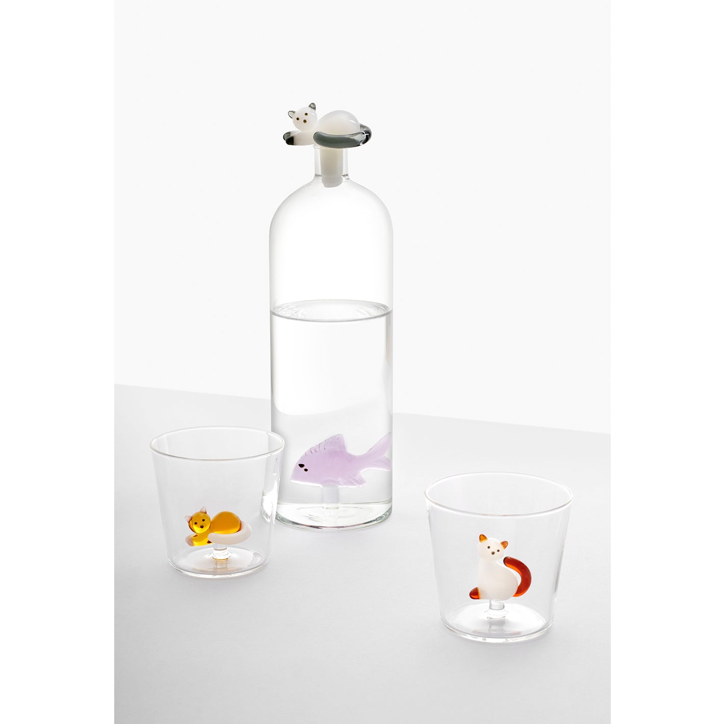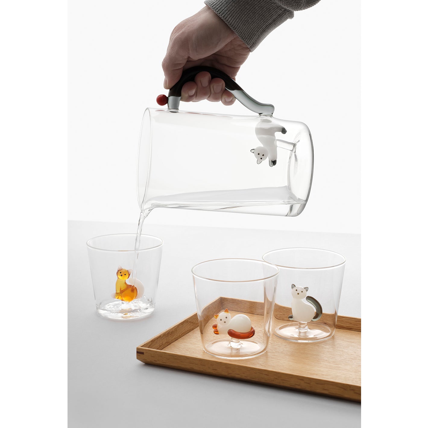 内側に小さな猫や犬のオブジェが入った、「イッケンドルフ」のガラスタンブラー。
