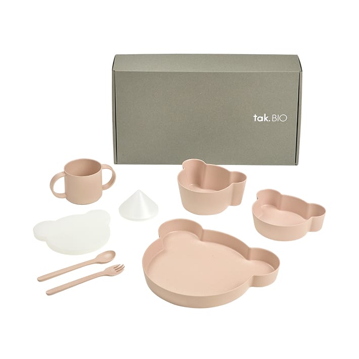 かわいらしい見た目と、やさしい手ざわりが人気のtak.の子ども用食器。