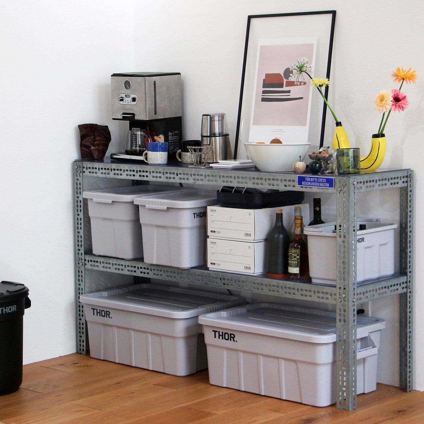 シンプルなデザインと、さりげないロゴがポイントのコンテナボックス。