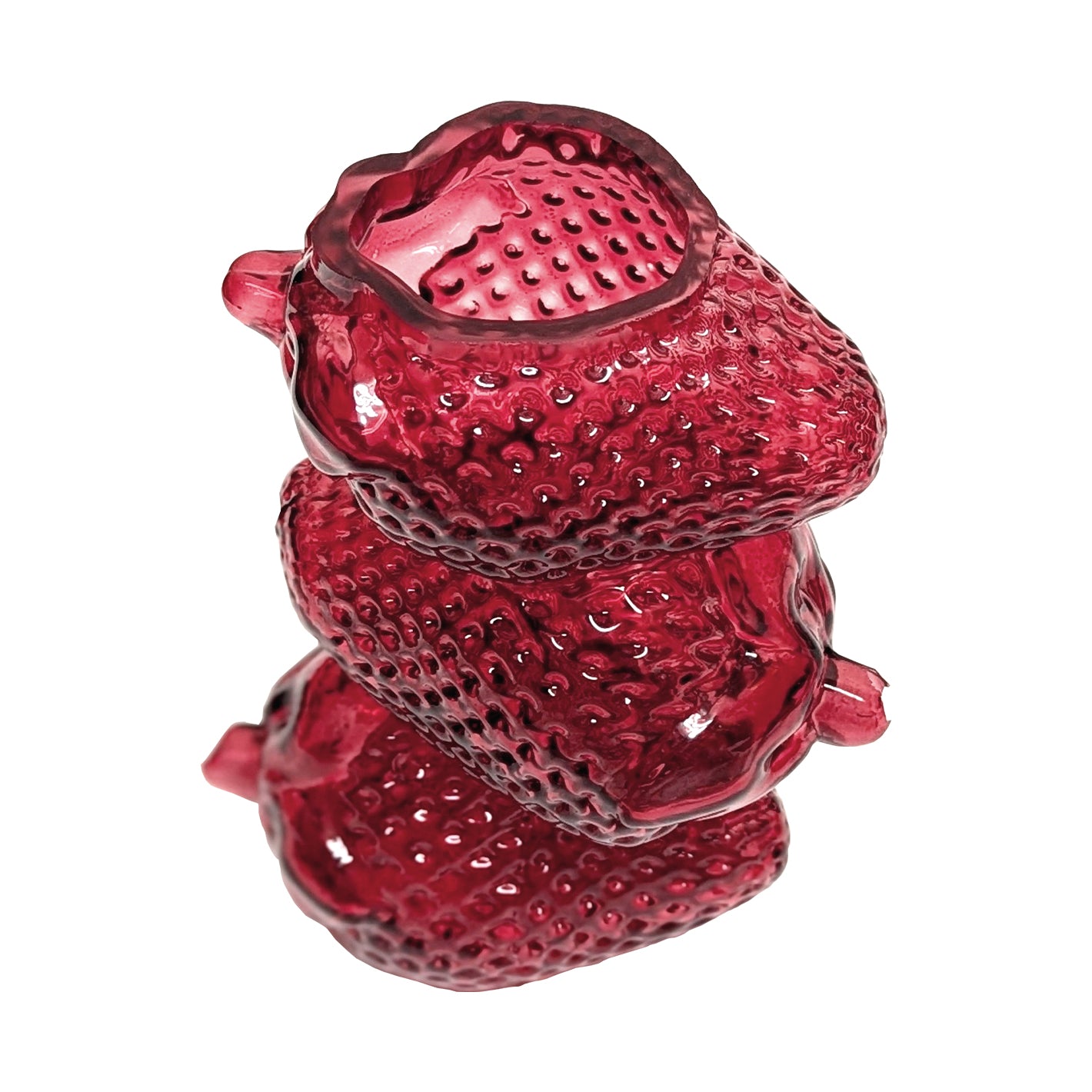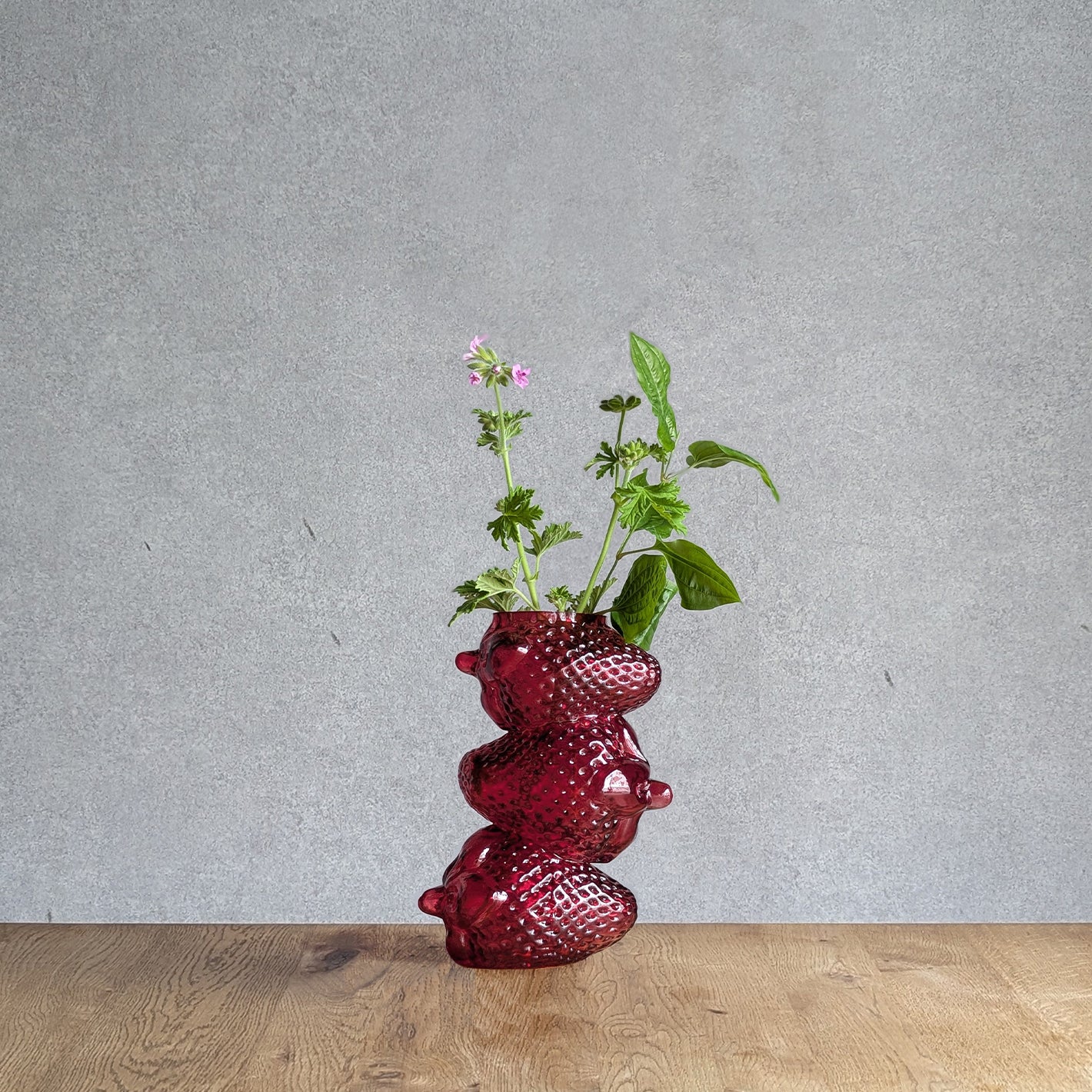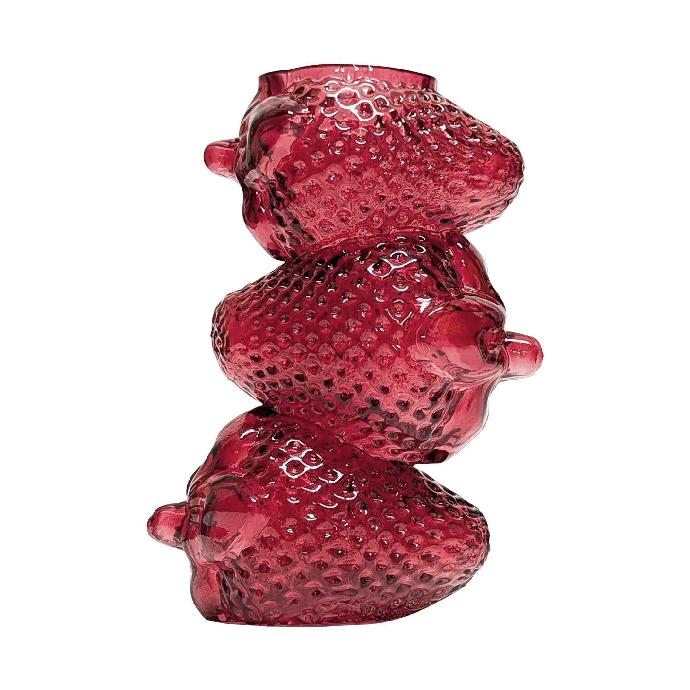 大きないちごの形をした、ユニークなガラスのフラワーベース。