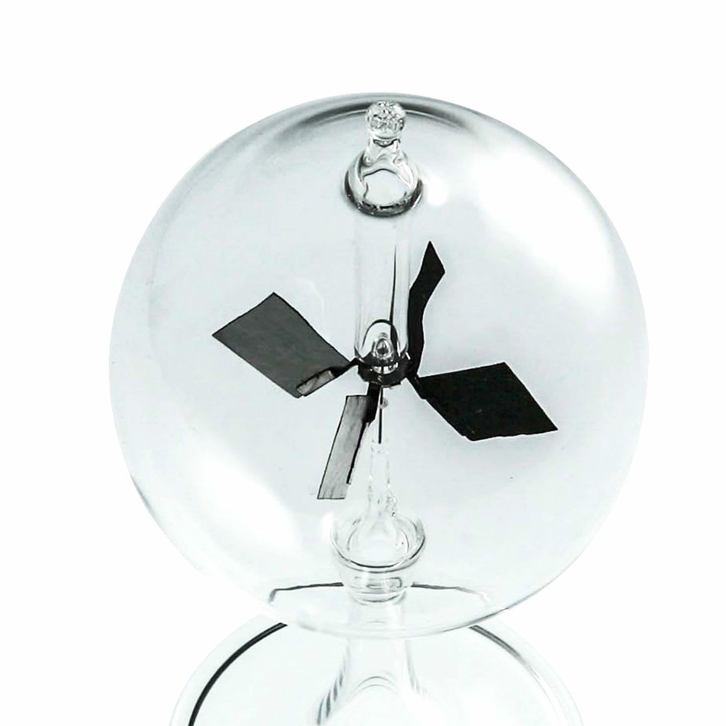 光に反応して、中の黒い羽根がくるくると回るガラスオブジェ。