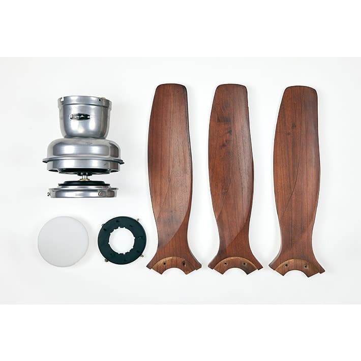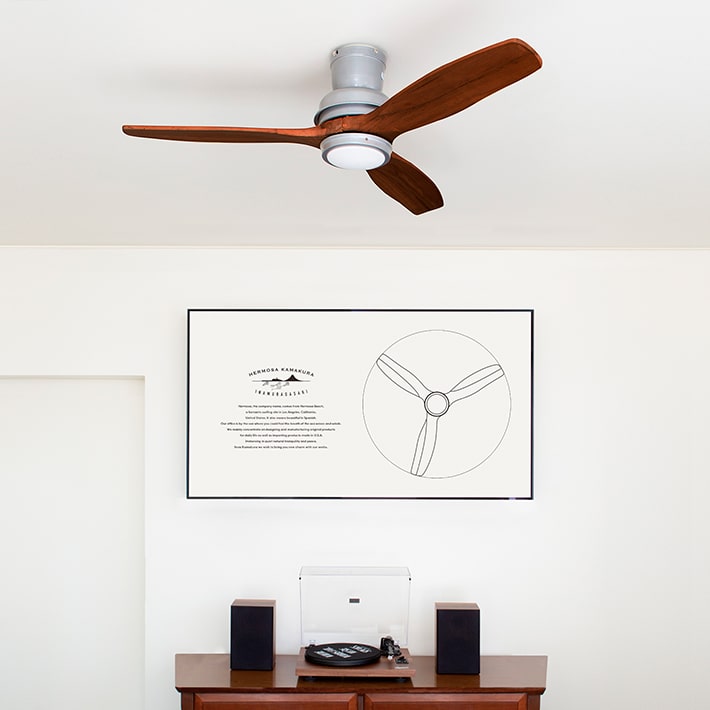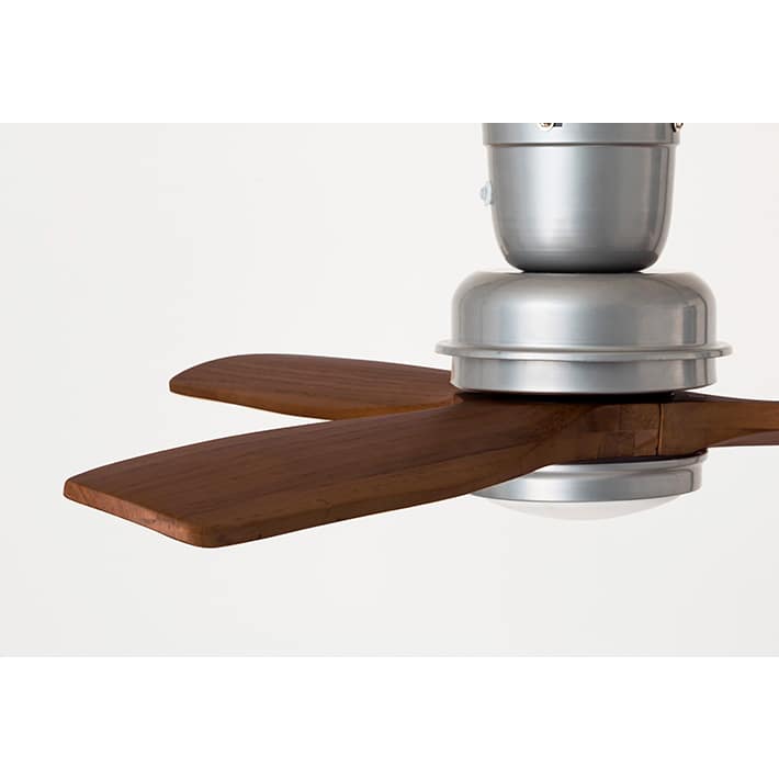 天然木の羽と、アイアンの異素材を組み合わせたシーリングファン。