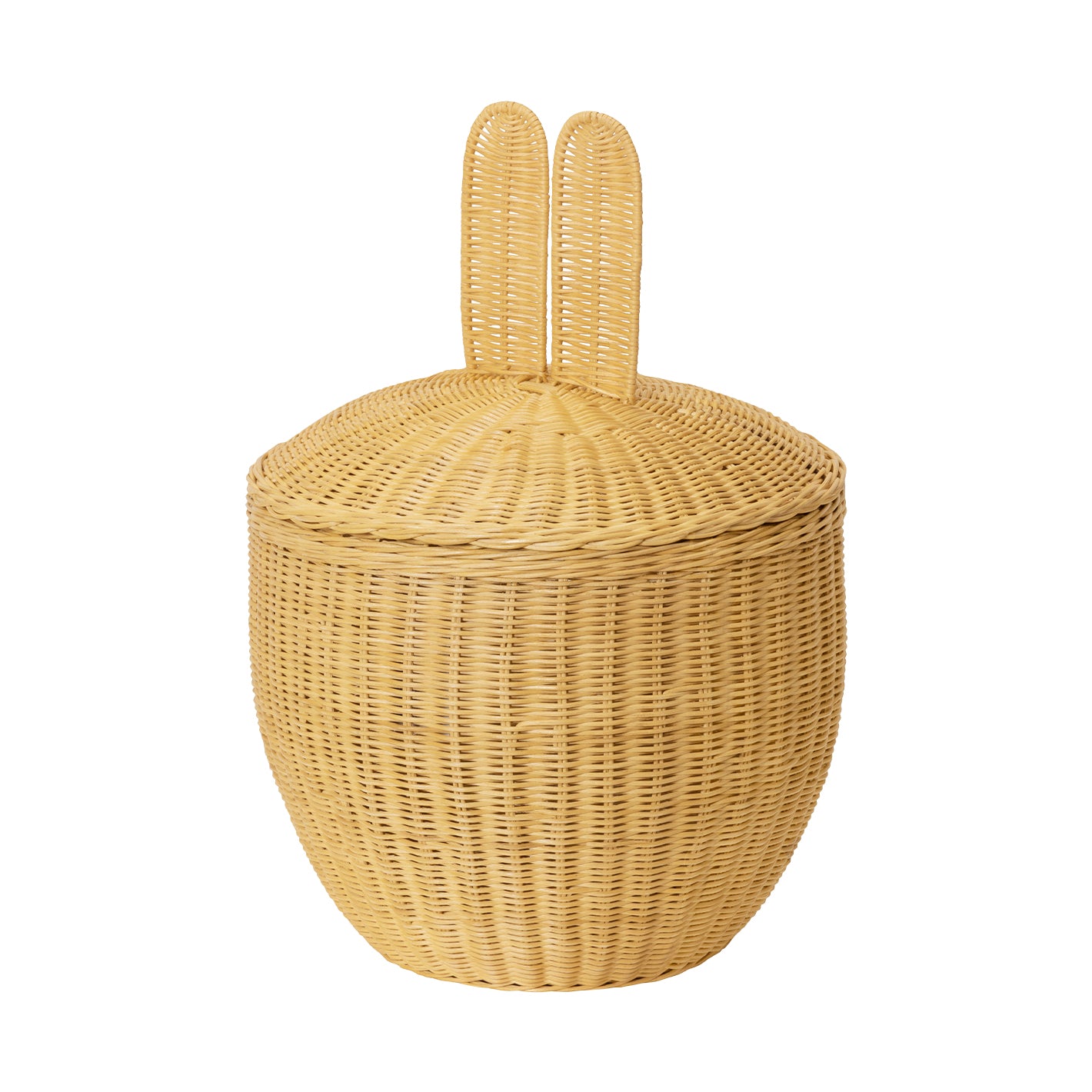 うさぎをイメージした耳と、丸みを帯びたフォルムが愛らしい収納カゴ。