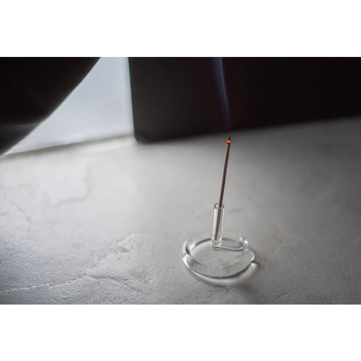 ユニークなかたちが印象的な、耐熱ガラス製のスティック用お香立て。