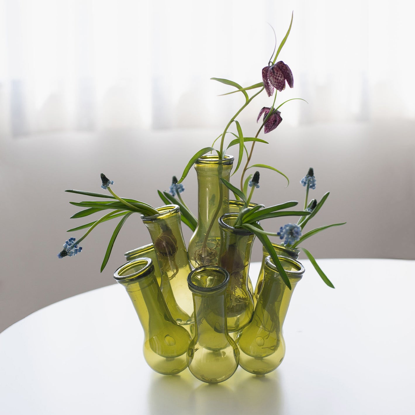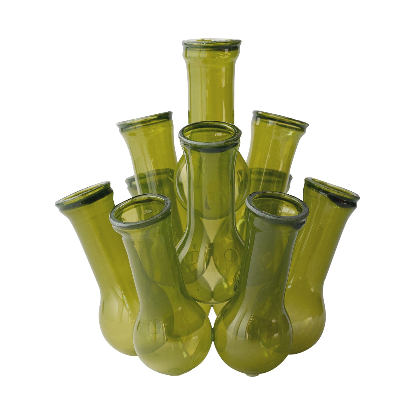10本のフラスコを重ねた、ヴィンテージな雰囲気のフラワーベース。
